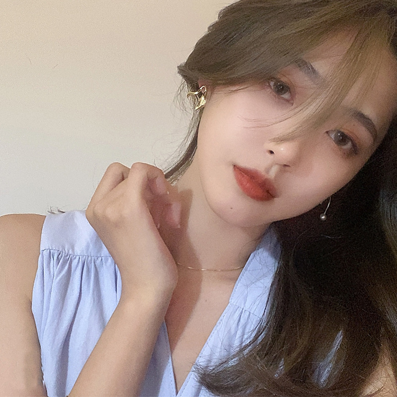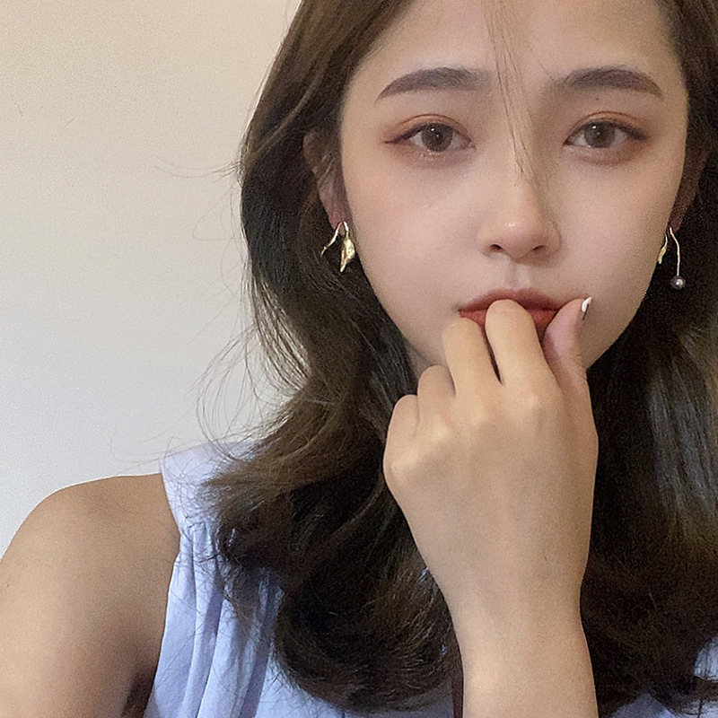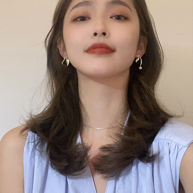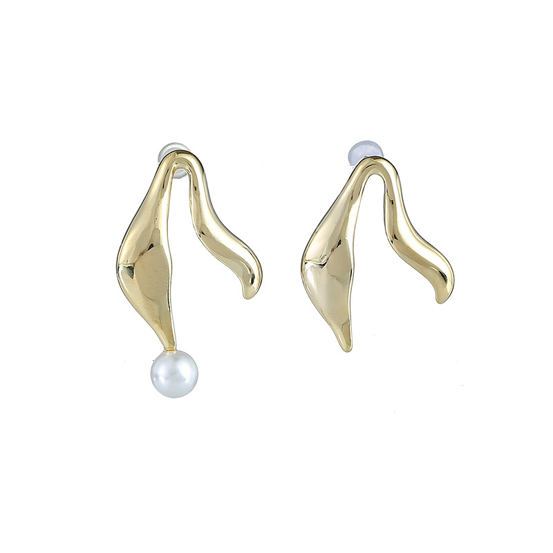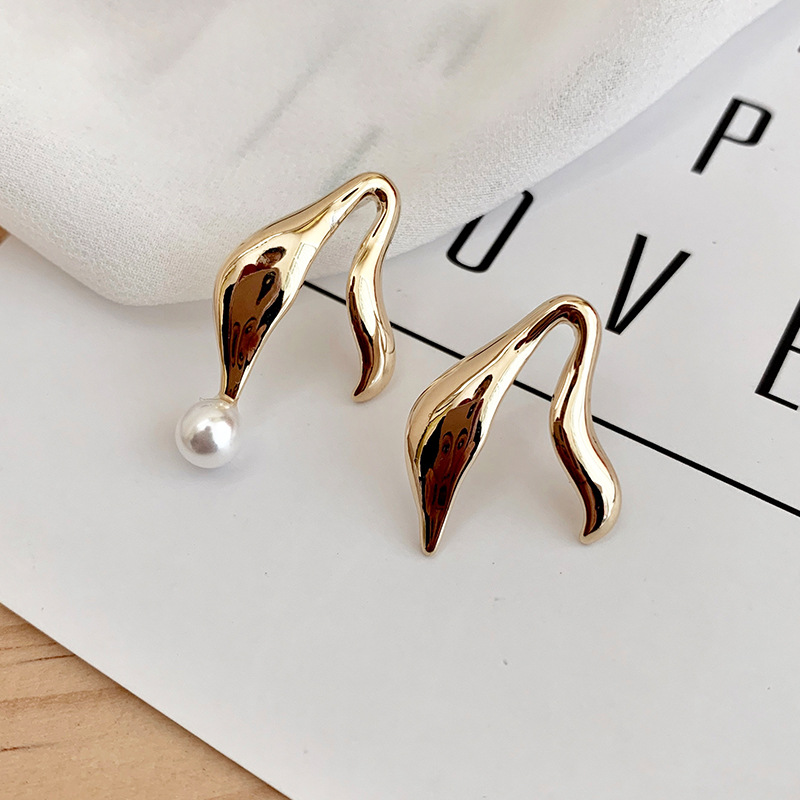 不对称鱼尾金属光面珍珠耳环小众设计感耳钉个性复古气质简约耳饰