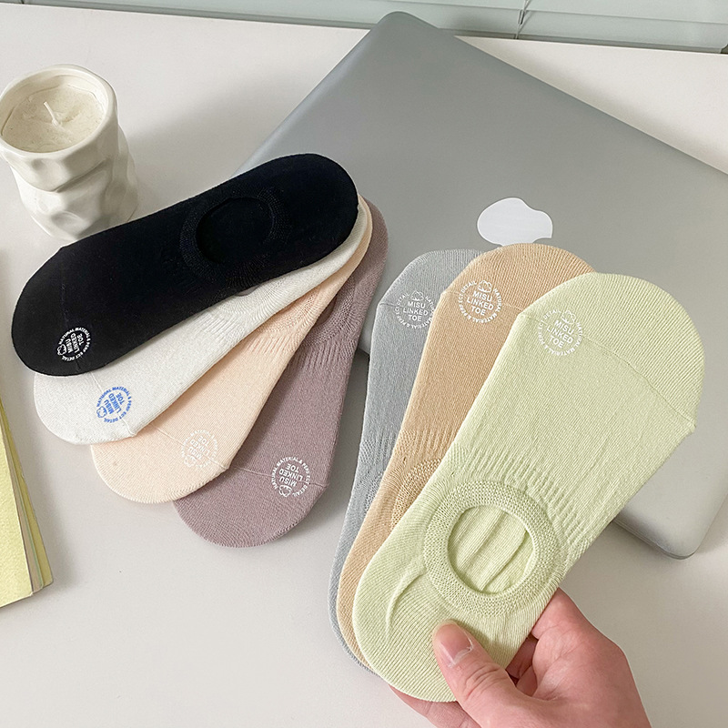 袜子女夏天小清新隐形船袜纯色吸汗短筒女生棉袜硅胶防滑印花短袜