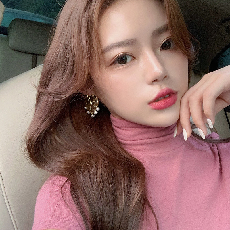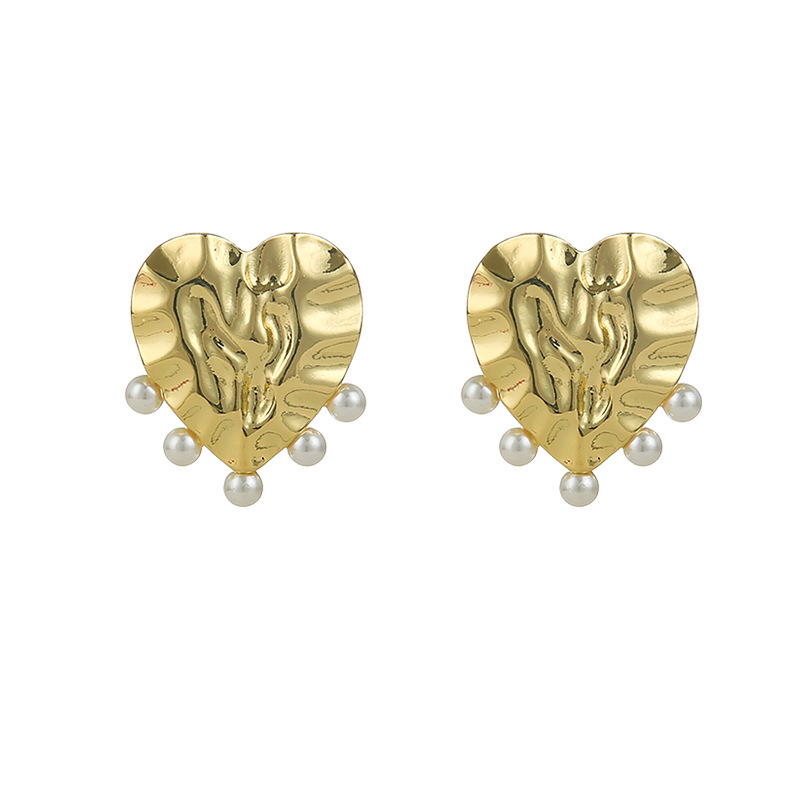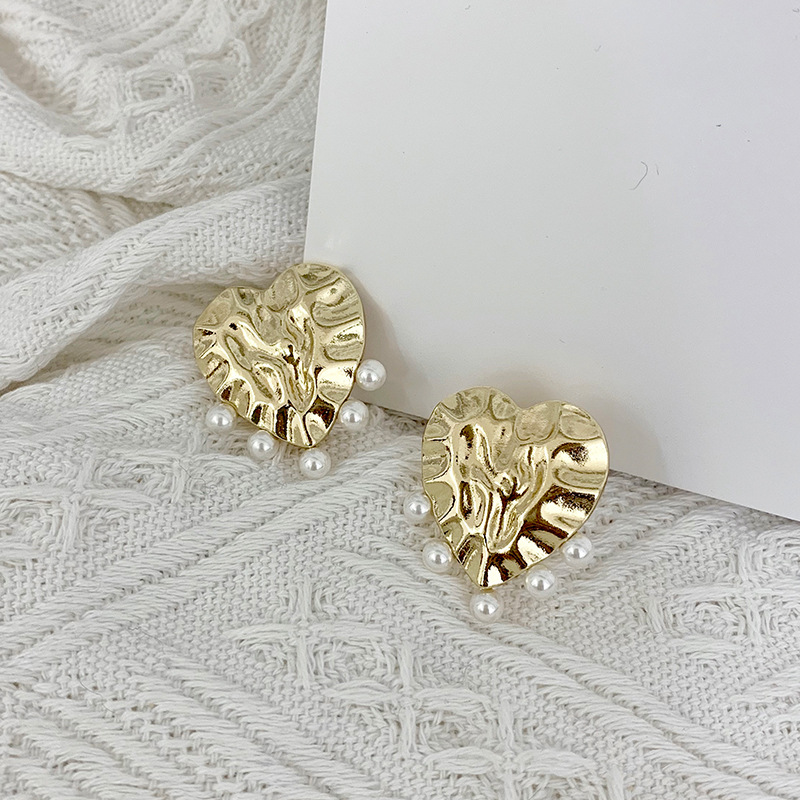 韩国东大门新款金属爱心珍珠耳环高级感简约百搭S925银针耳钉耳饰