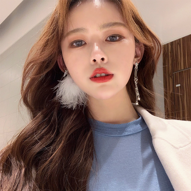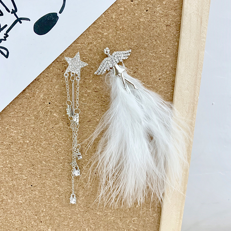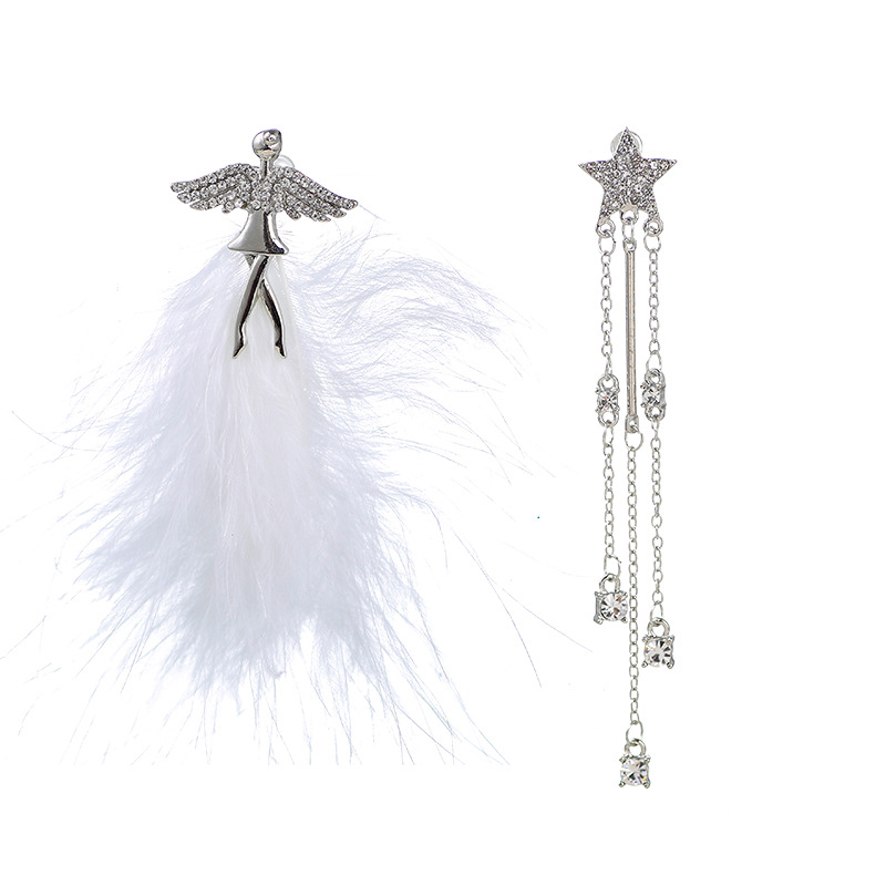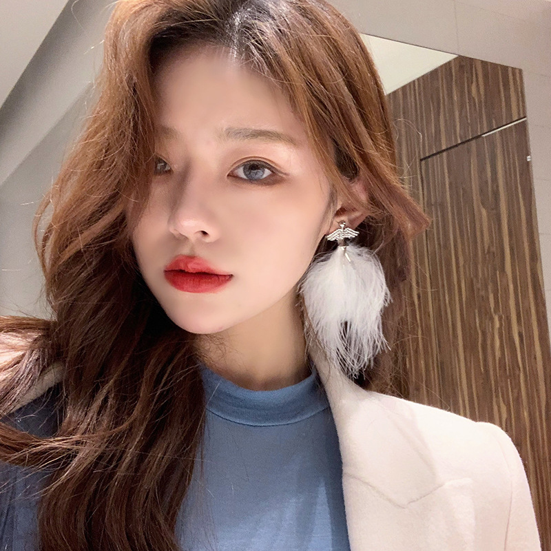 芭蕾舞女孩不对称羽毛耳环韩国时尚优雅甜美耳钉秋冬个性网红耳饰