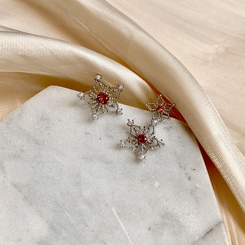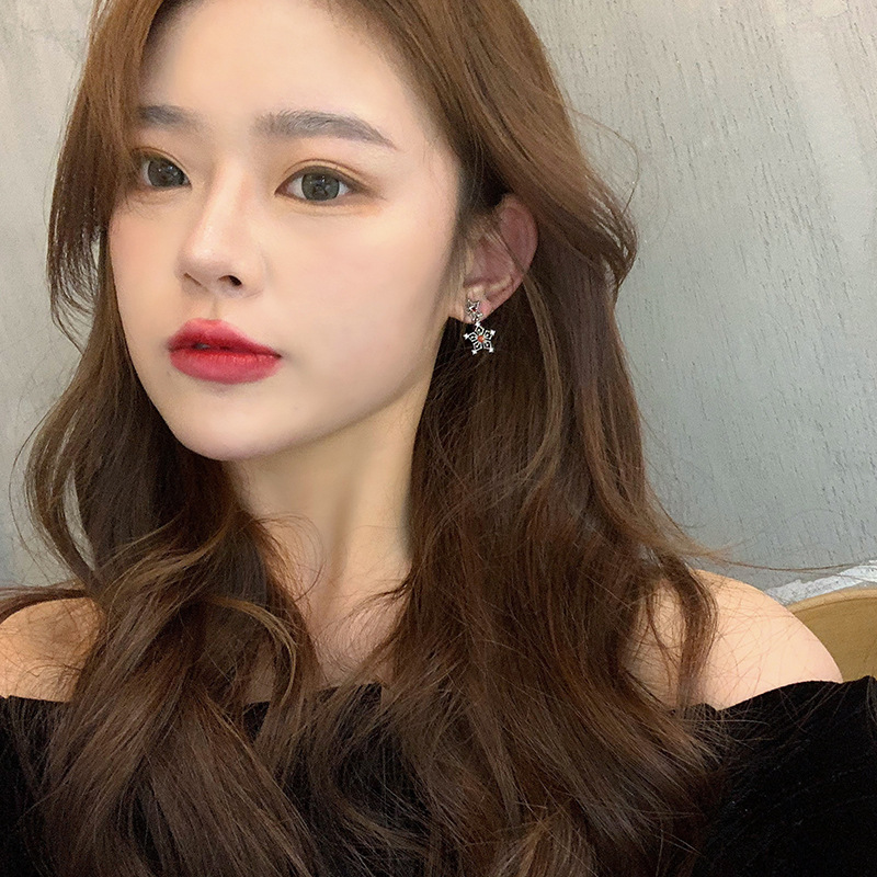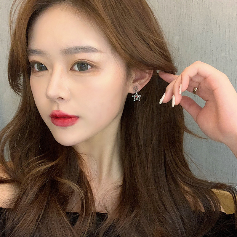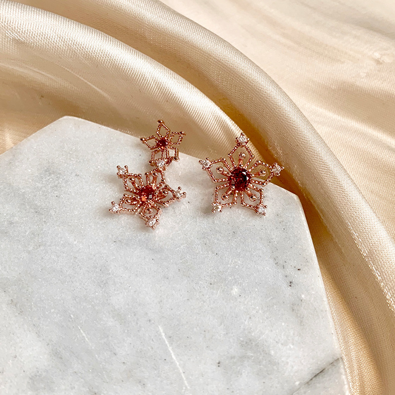 高级感不对称花朵耳环韩国气质网红时尚气质优雅镶锆石耳坠耳饰女