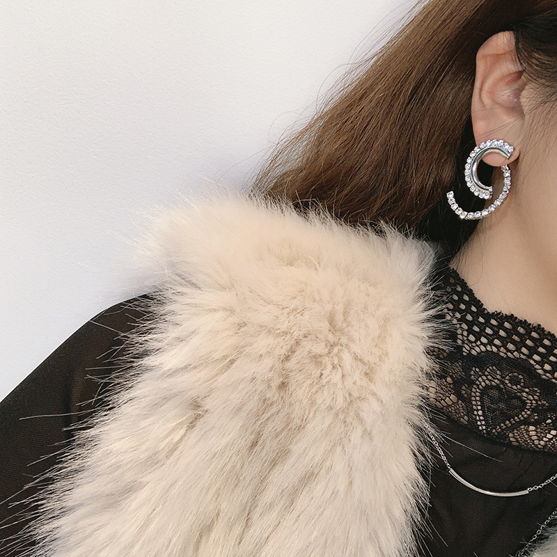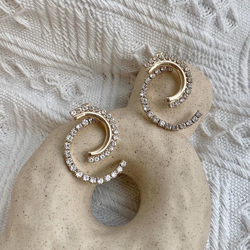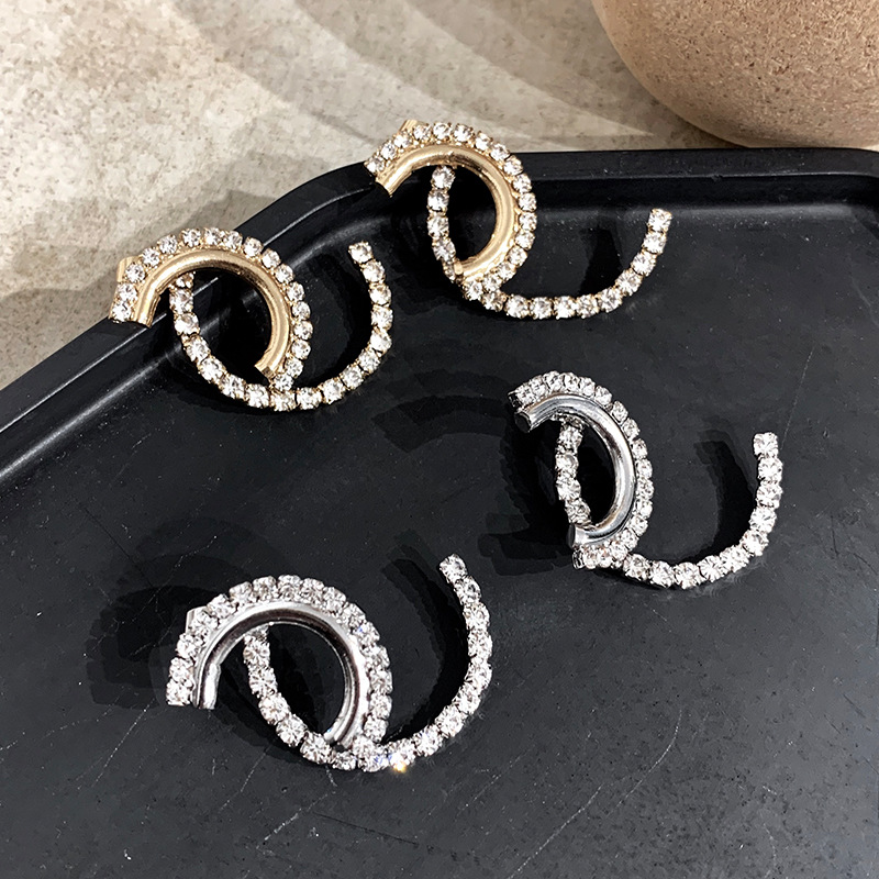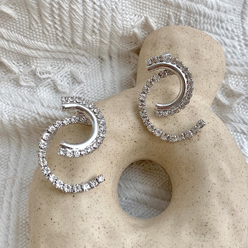 S925银针冷淡风几何半环闪钻耳钉女日韩气质百搭设计感耳环耳饰品