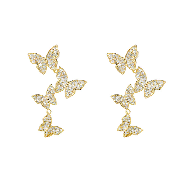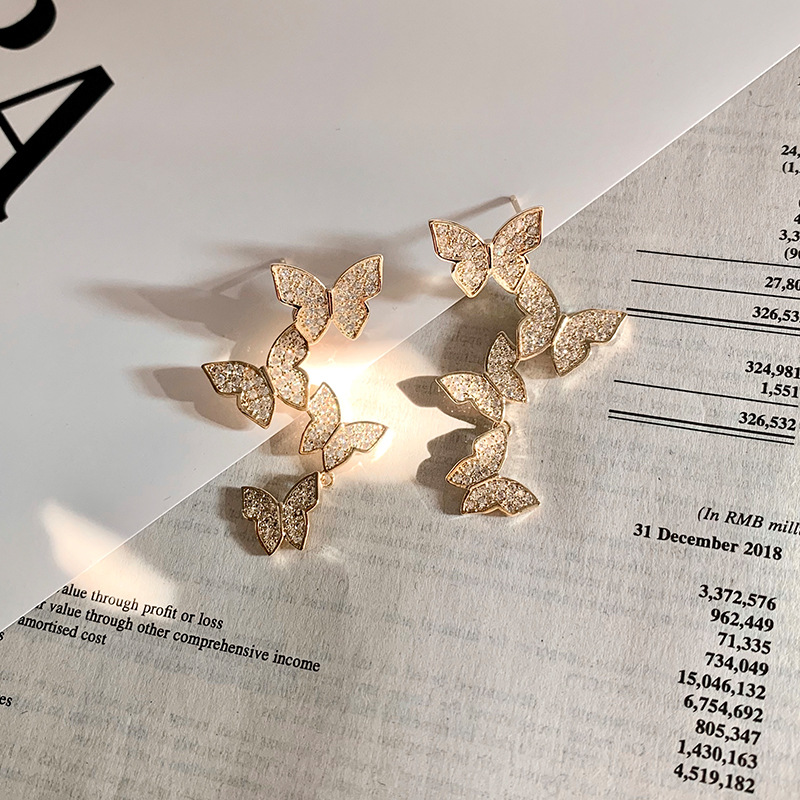仙气满钻蝴蝶耳环新款高级感个性气质百搭耳饰S925银针耳钉女