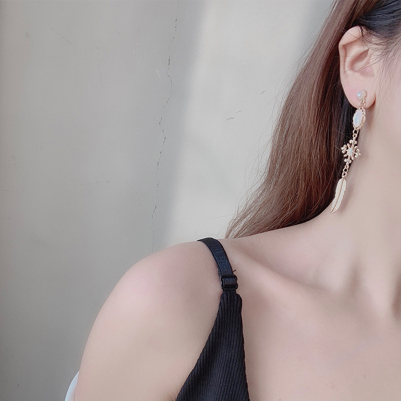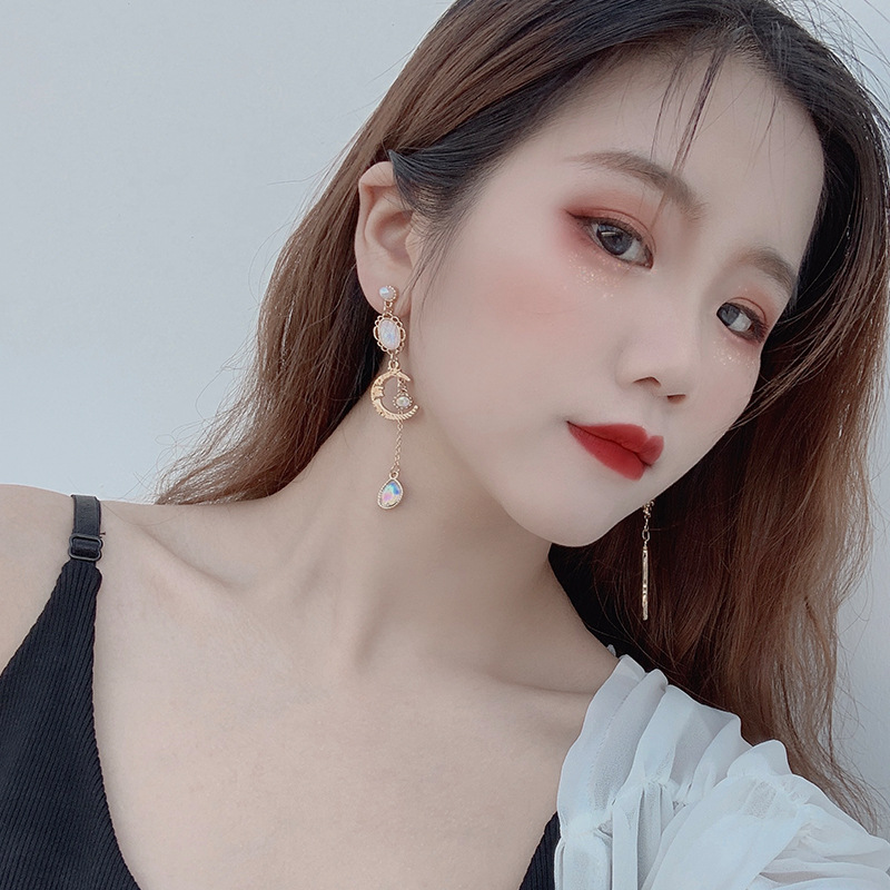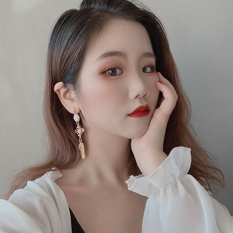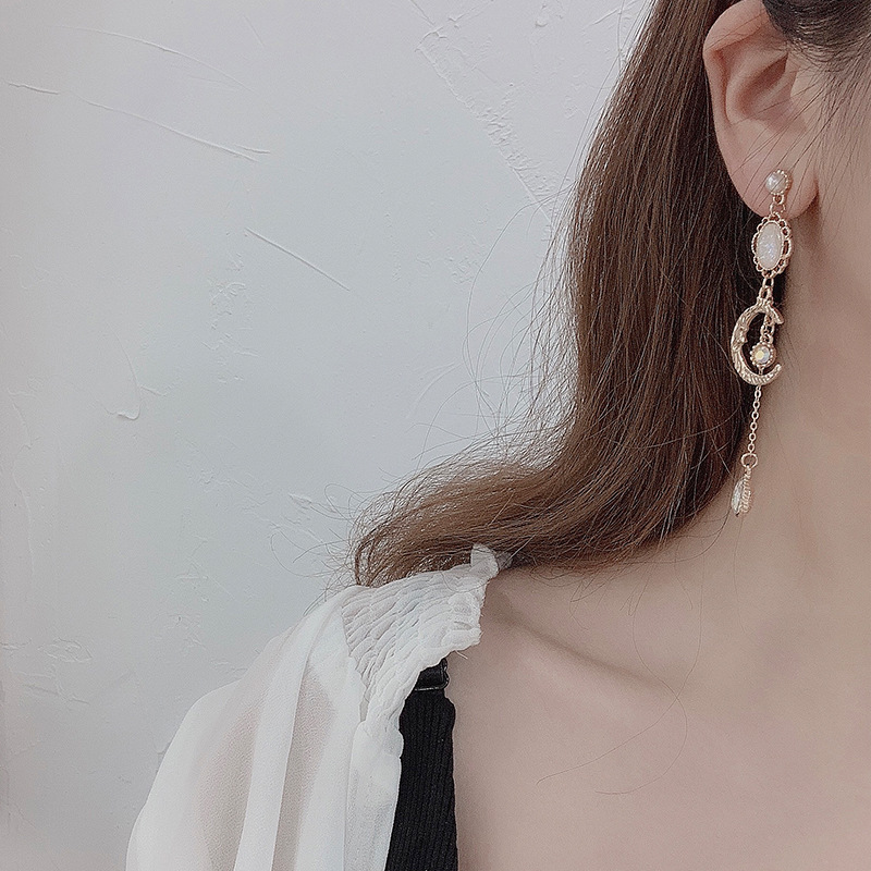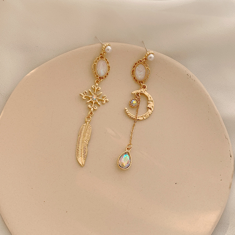 复古巴洛克星星月亮不对称羽毛耳坠女气质优雅长款百搭显脸瘦耳饰