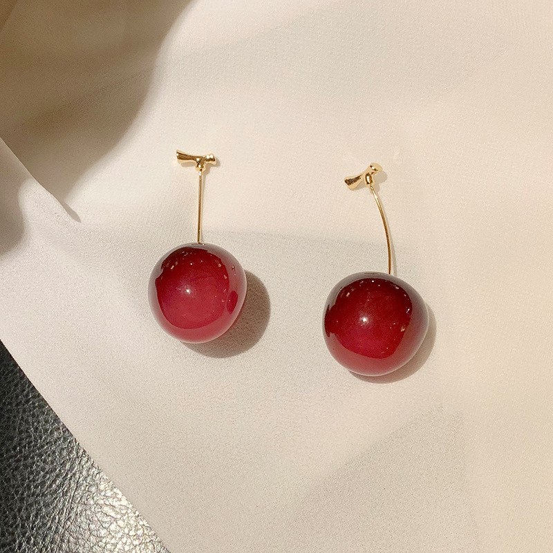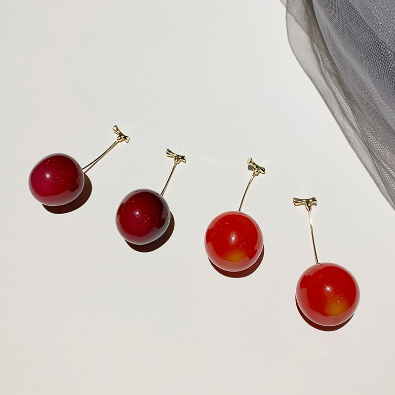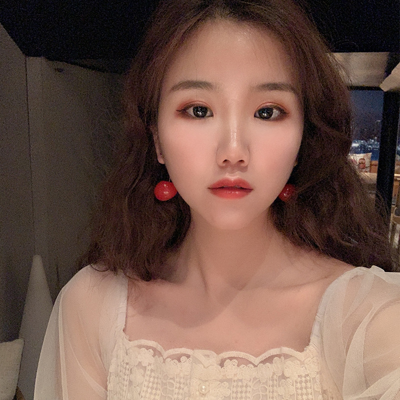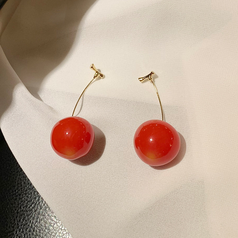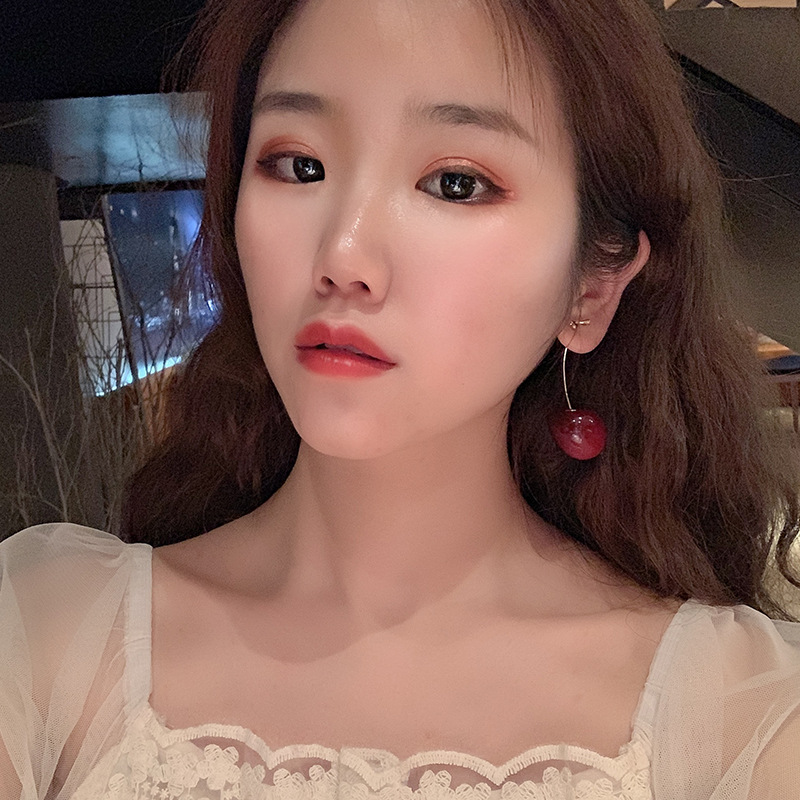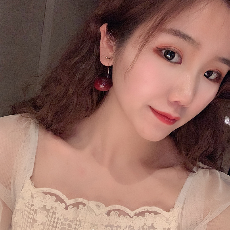 夏季可爱少女心红色樱桃车厘子耳环韩国网红时尚气质长款耳坠饰品