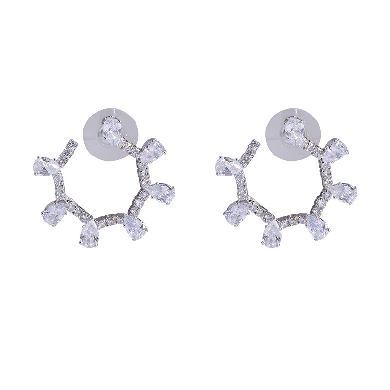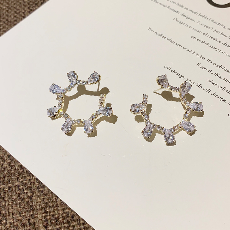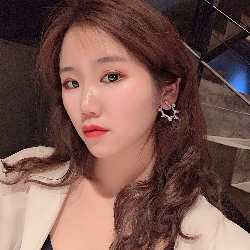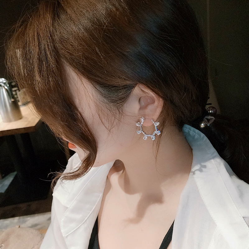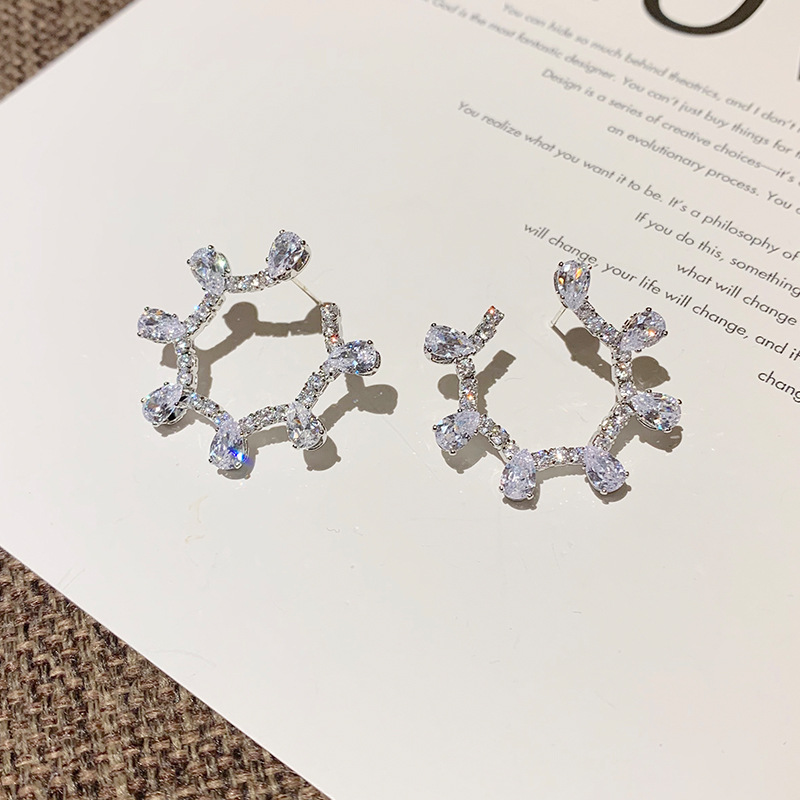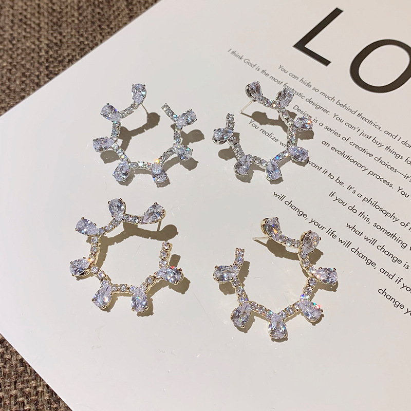 韩国东大门水钻圆圈耳环女闪钻奢华气质水滴满钻耳环S925银针耳钉