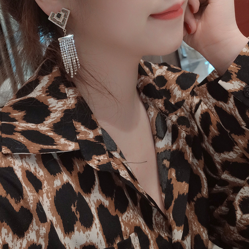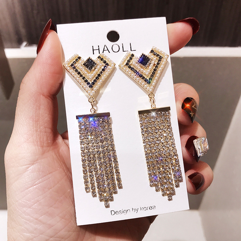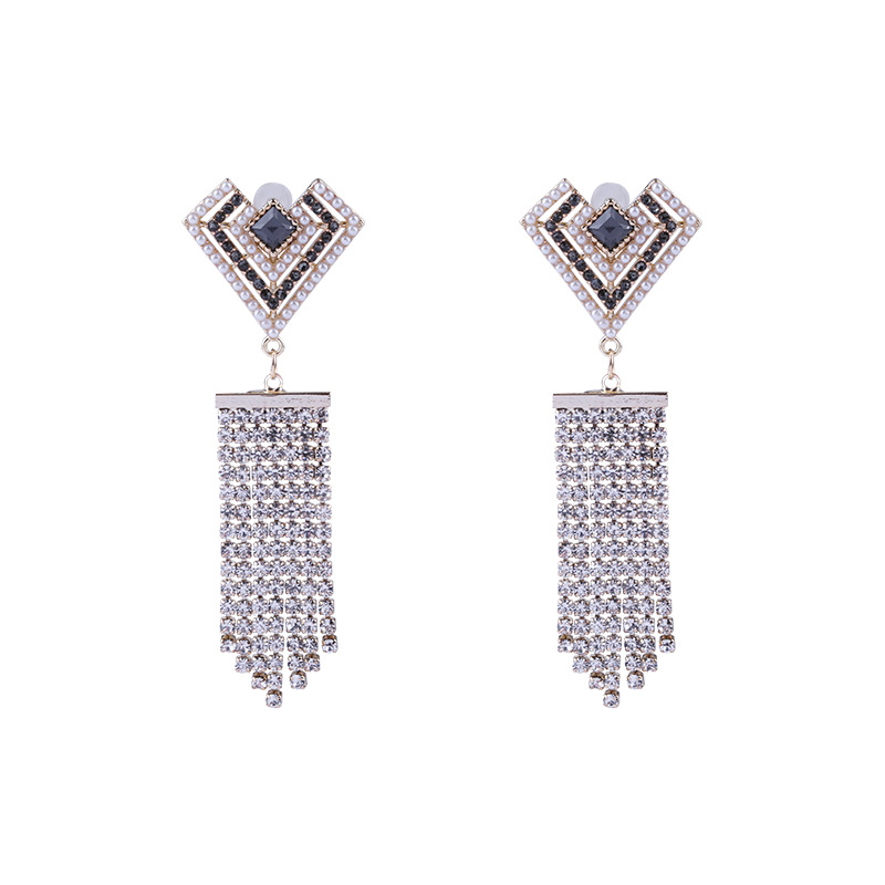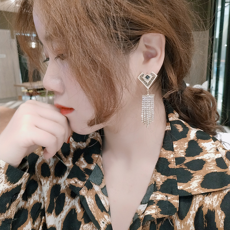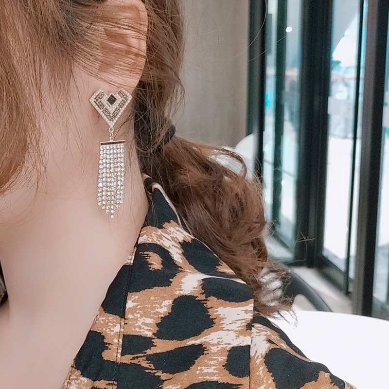欧美夸张满钻爱心形耳环女个性潮人流苏气质百搭S925银针耳钉耳饰