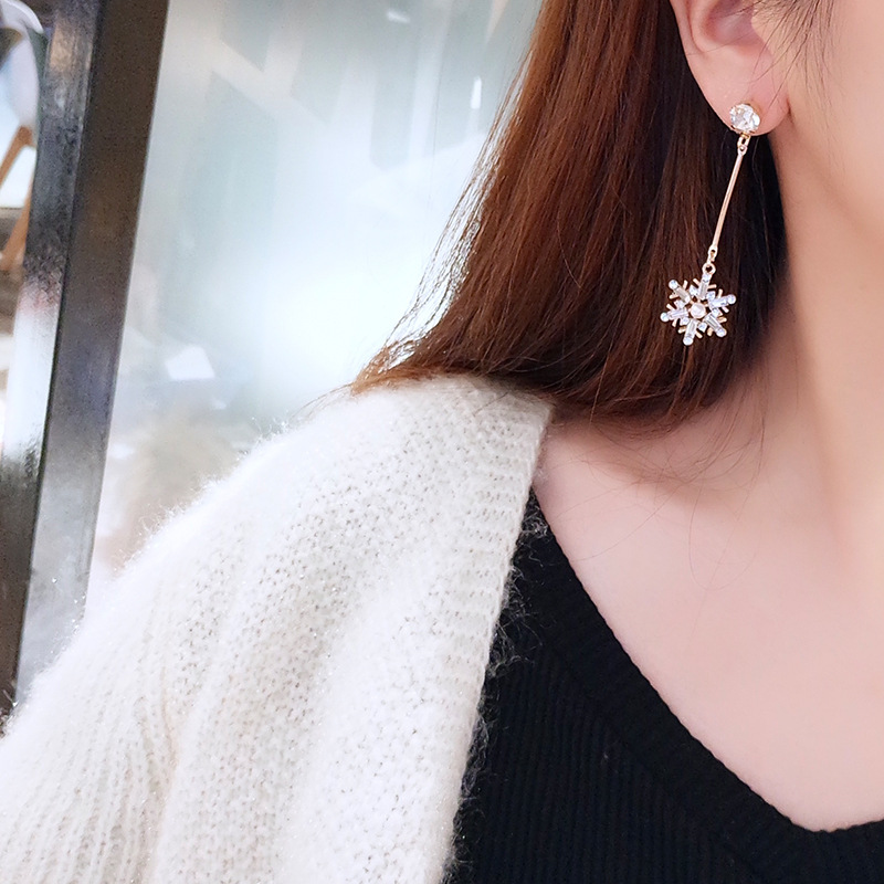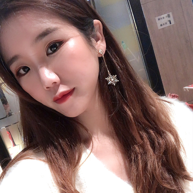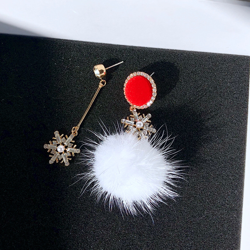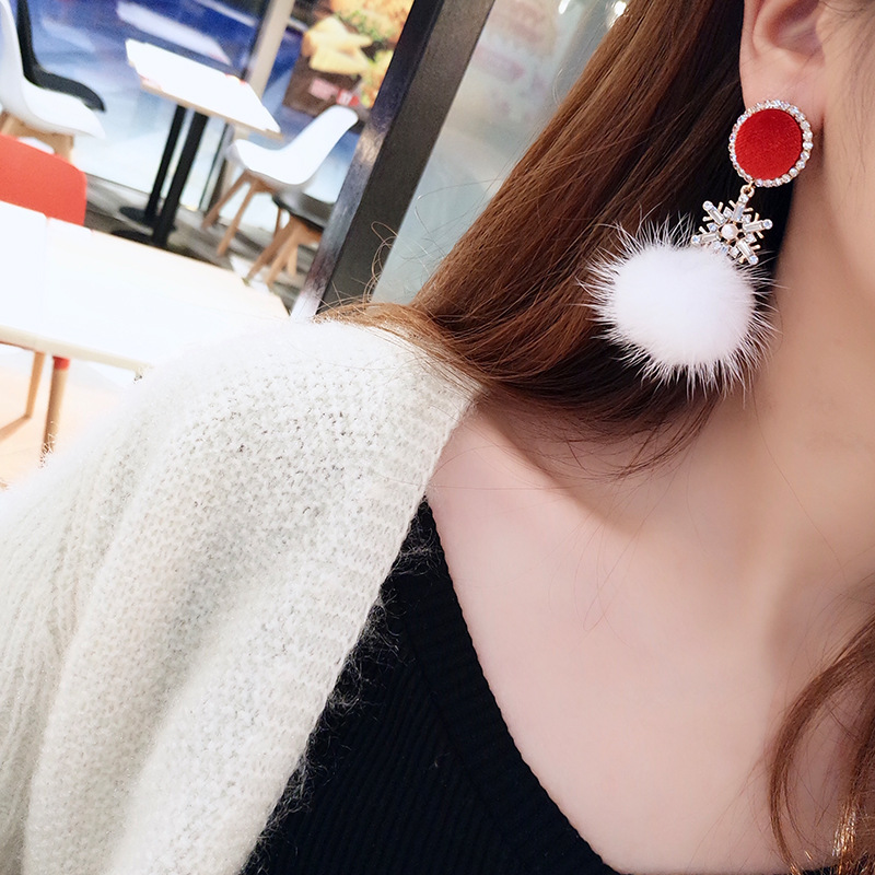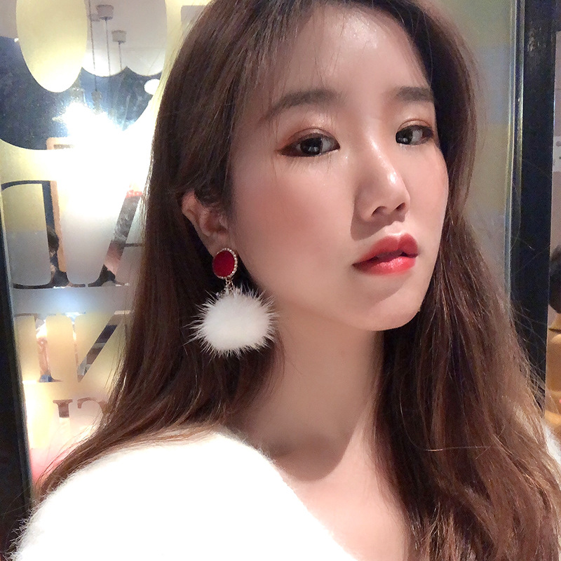 韩国气质雪花毛球耳环简约个性耳坠时尚百搭长款镶钻耳钉耳饰品女