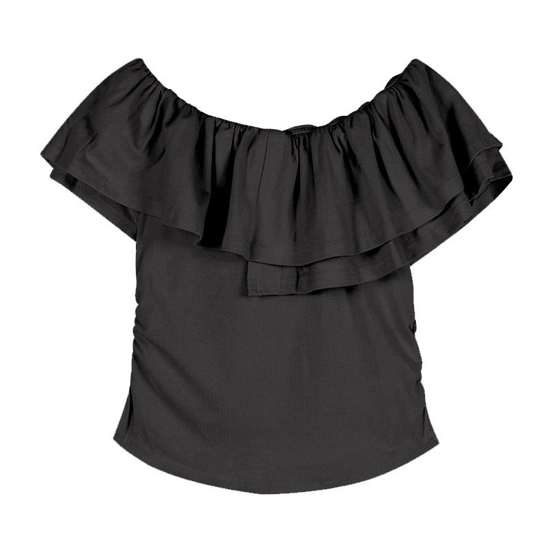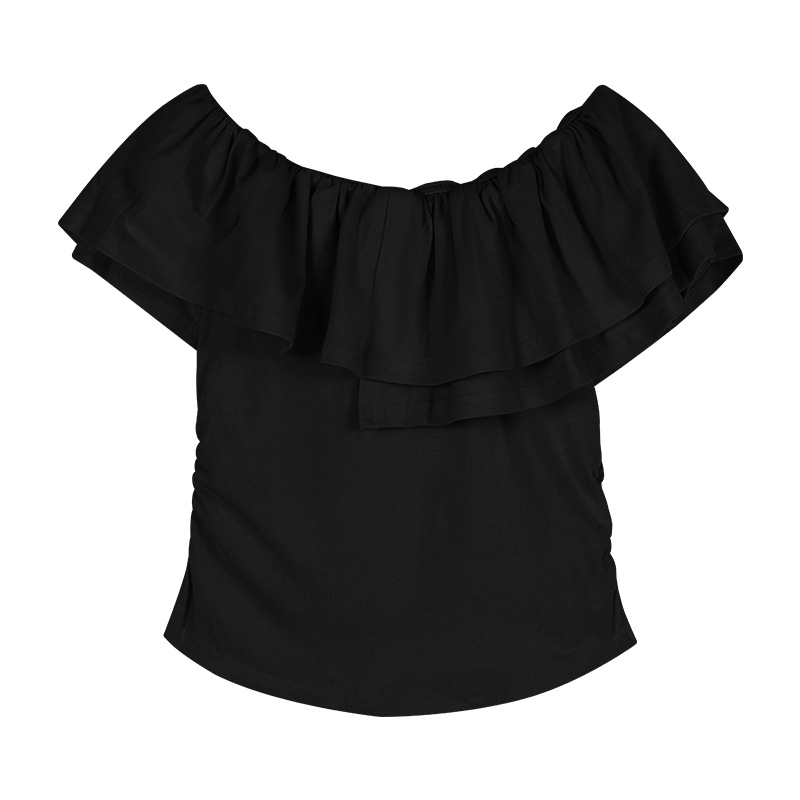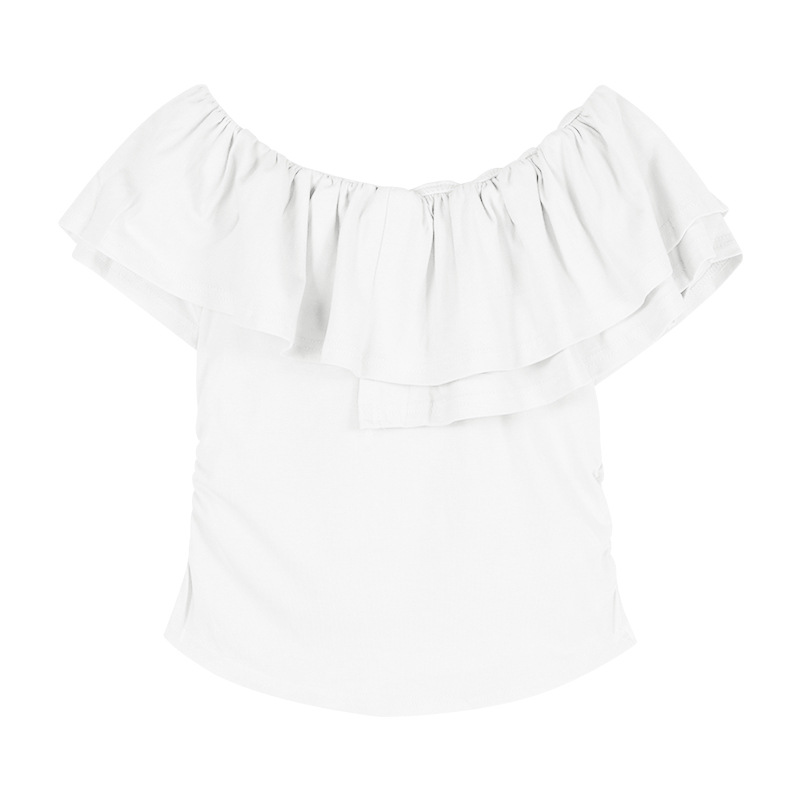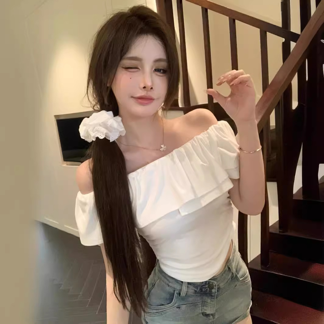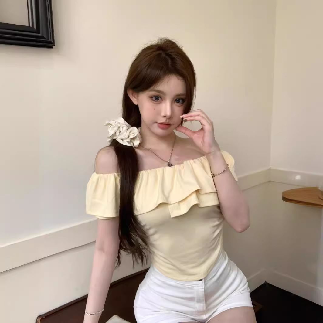 纯欲风甜美荷叶边一字肩短袖t恤夏修身显瘦短款上衣