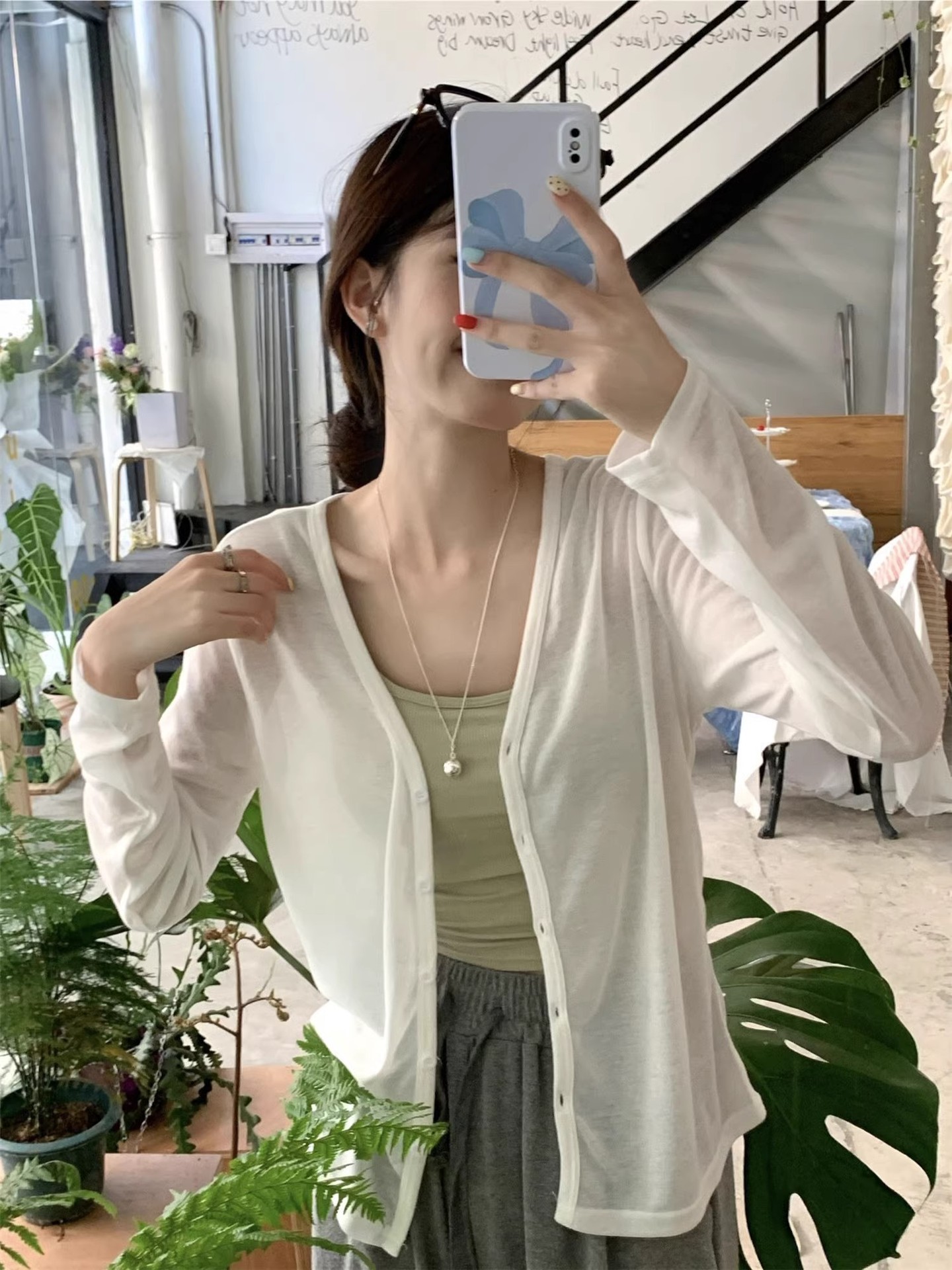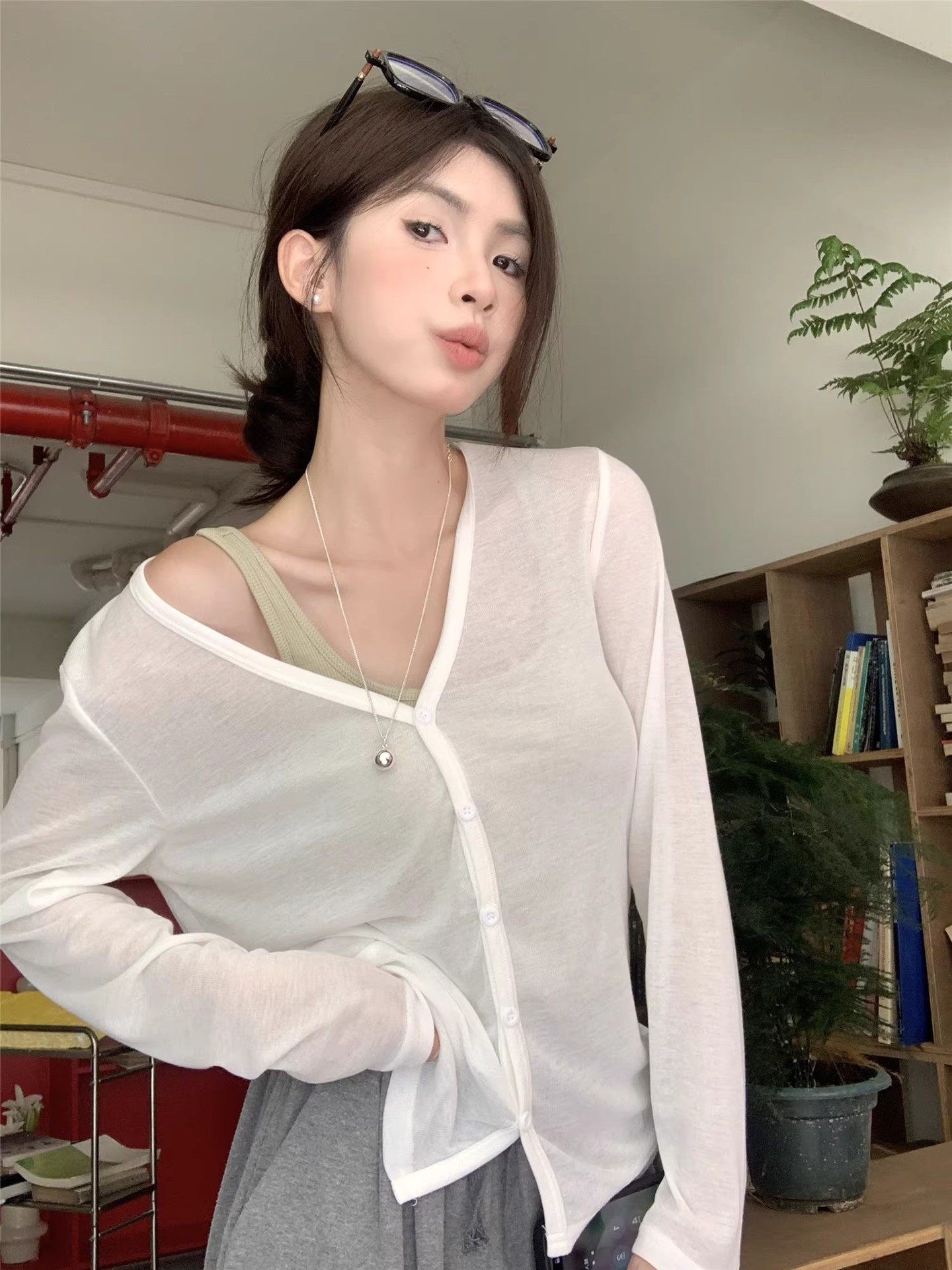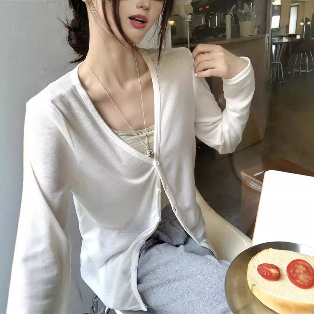 薄款长袖开衫夏季微透空调衫外搭防晒衫休闲显瘦上衣