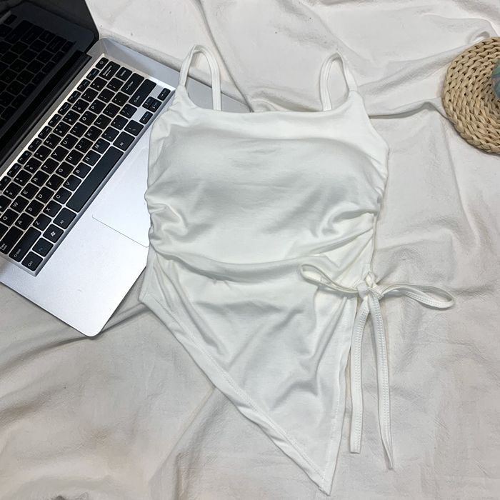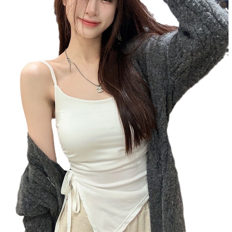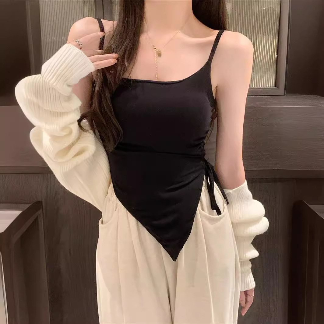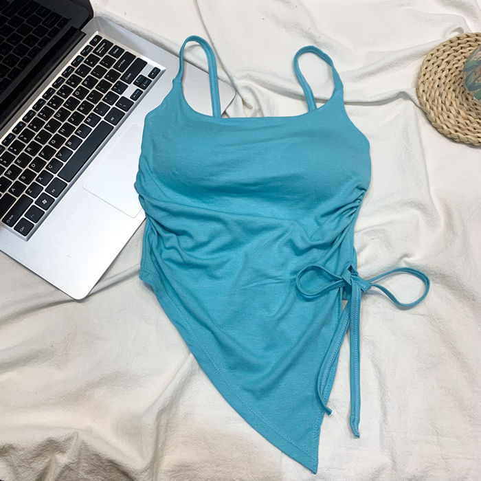 不规则开叉吊带背心女夏季系带设计感内搭带胸垫外穿甜辣抹胸上衣