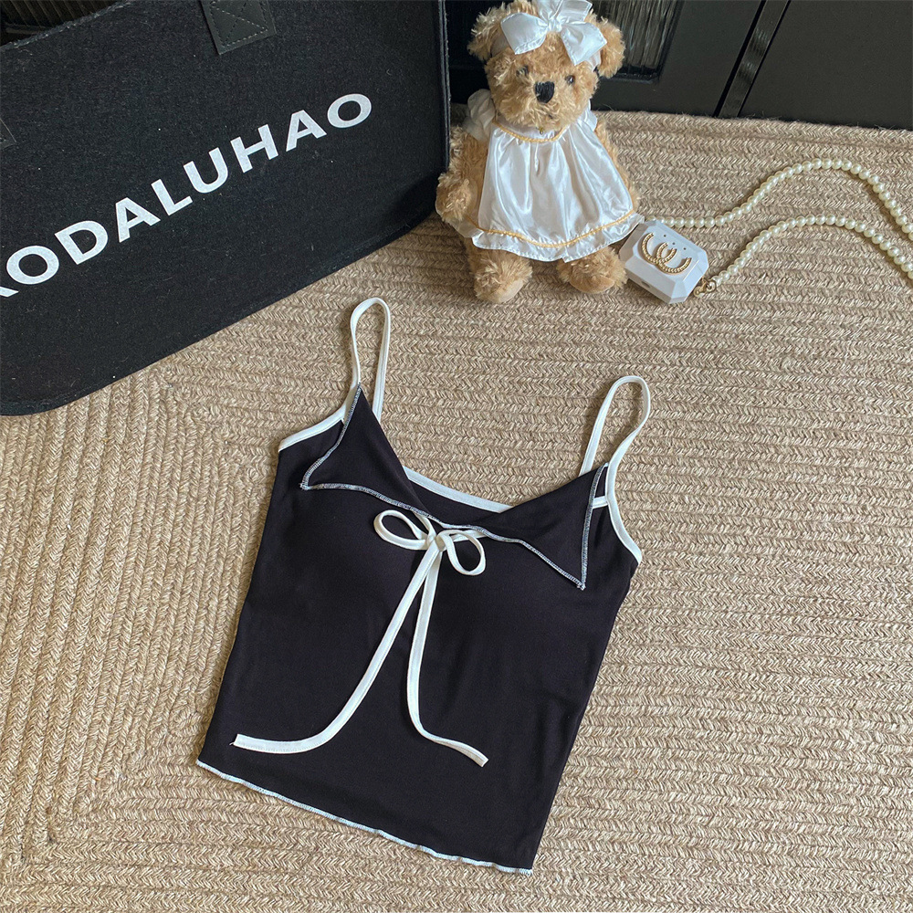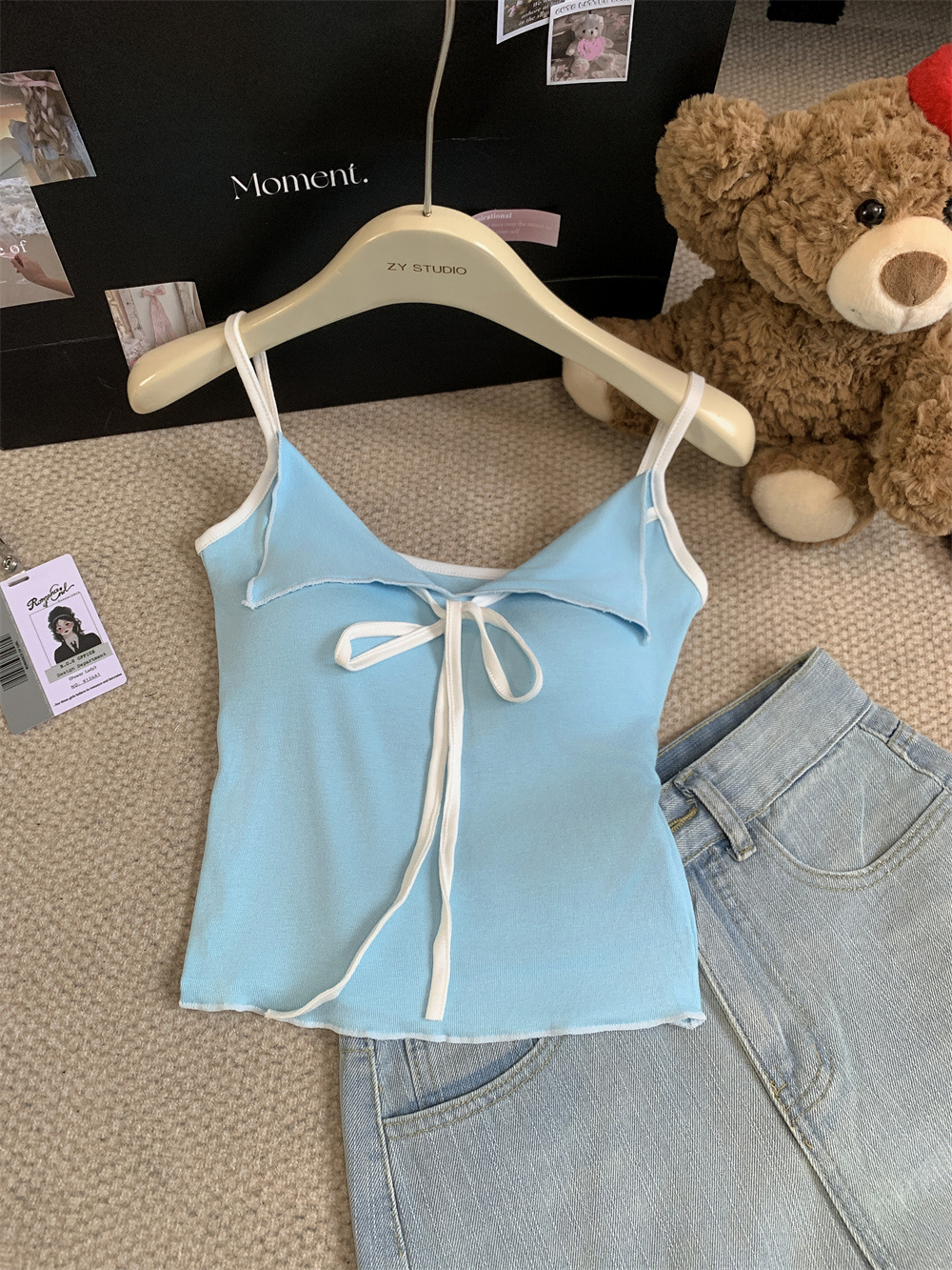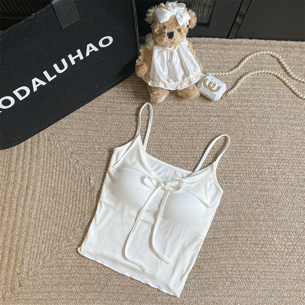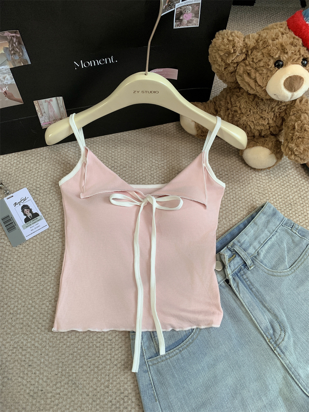 穿色新款上衣蝴蝶结甜辣搭外女背心无袖性感吊带撞打底修身内蝴蝶