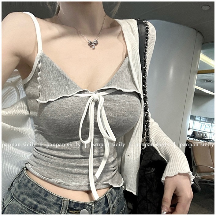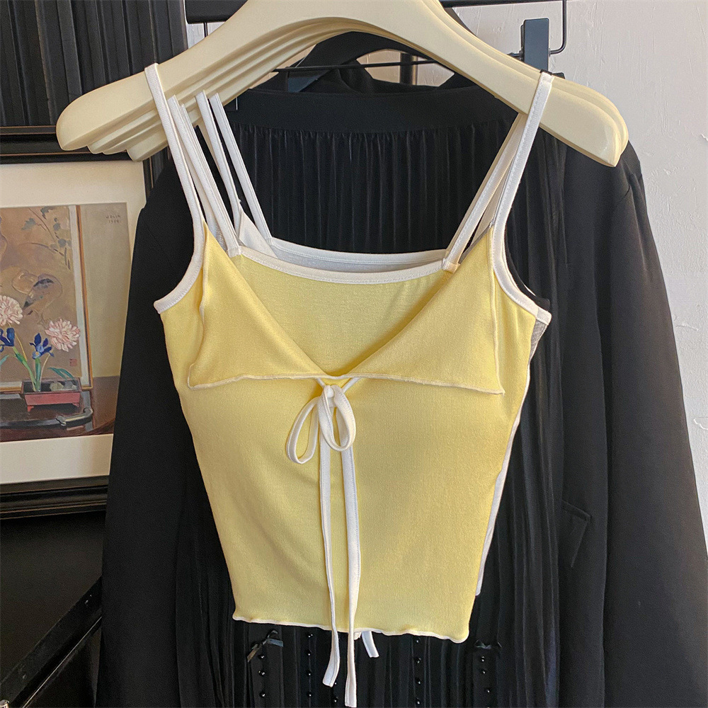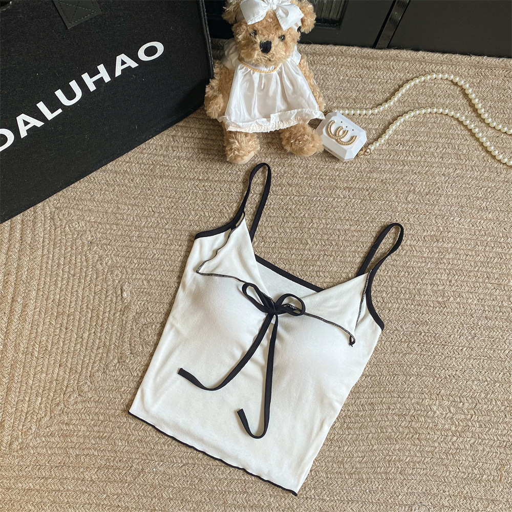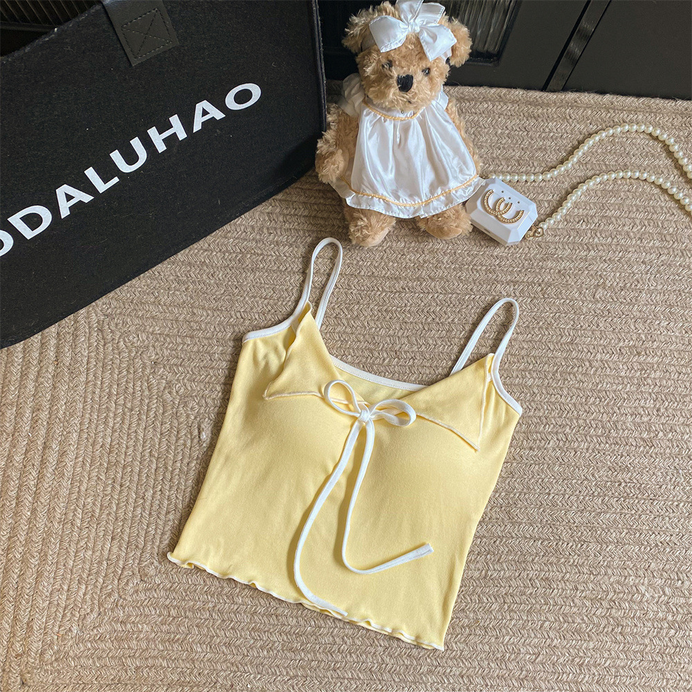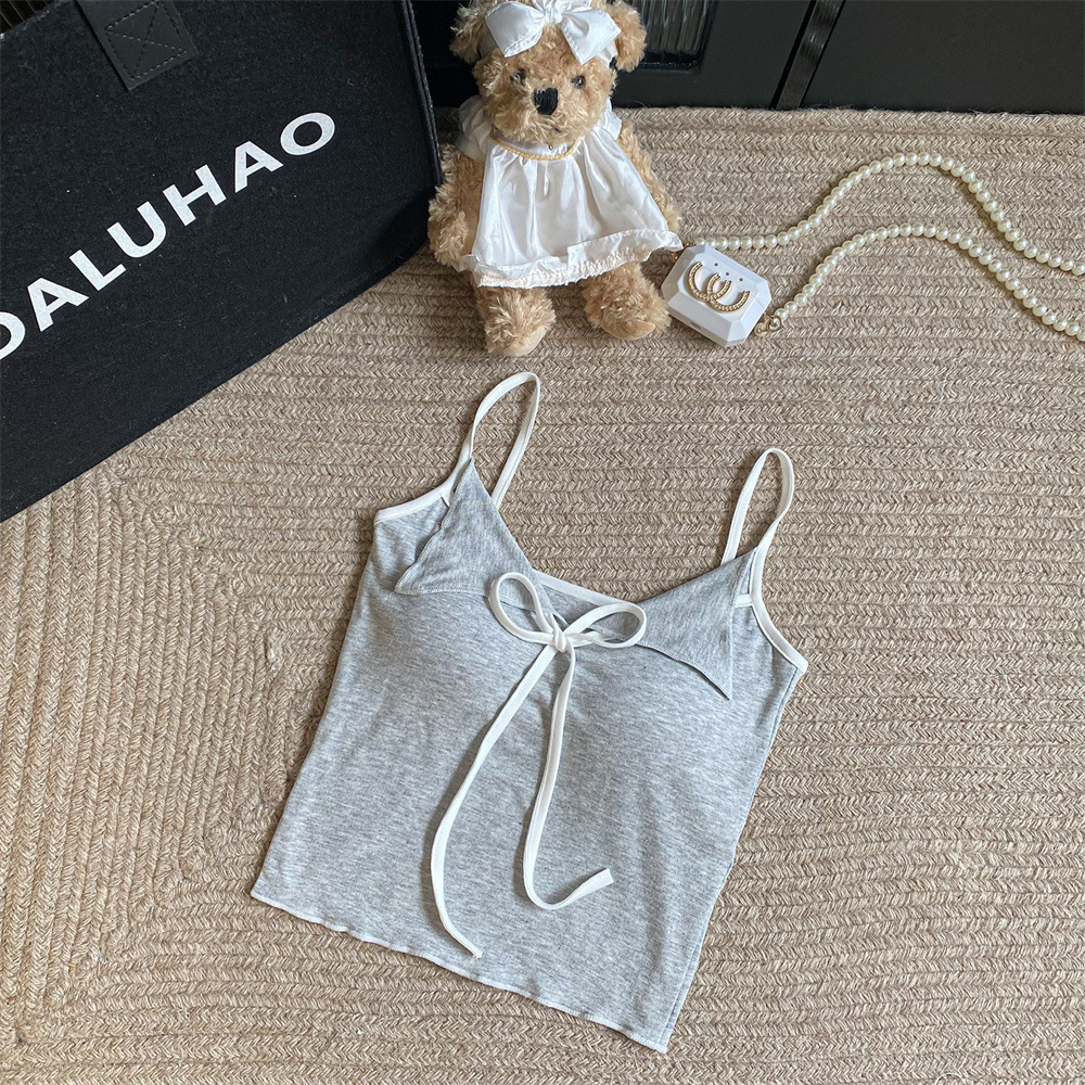穿色新款上衣蝴蝶结甜辣搭外女背心无袖性感吊带撞打底修身内蝴蝶