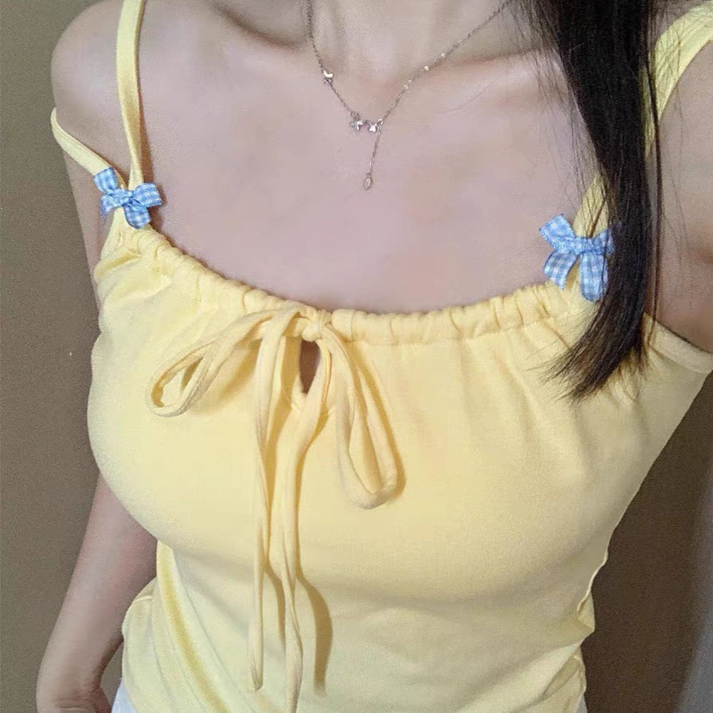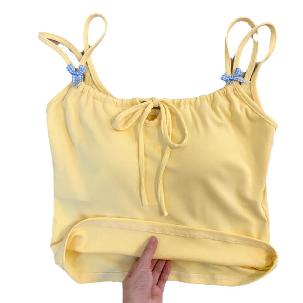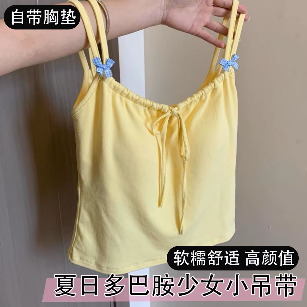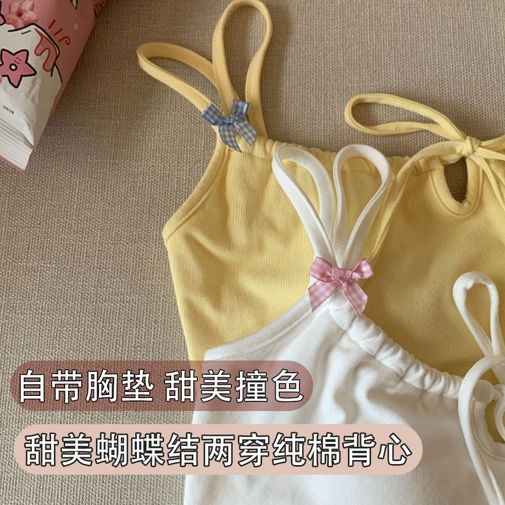 bm芭蕾风系带蝴蝶结白色吊带背心女下内搭打底美背外穿带胸垫上衣
