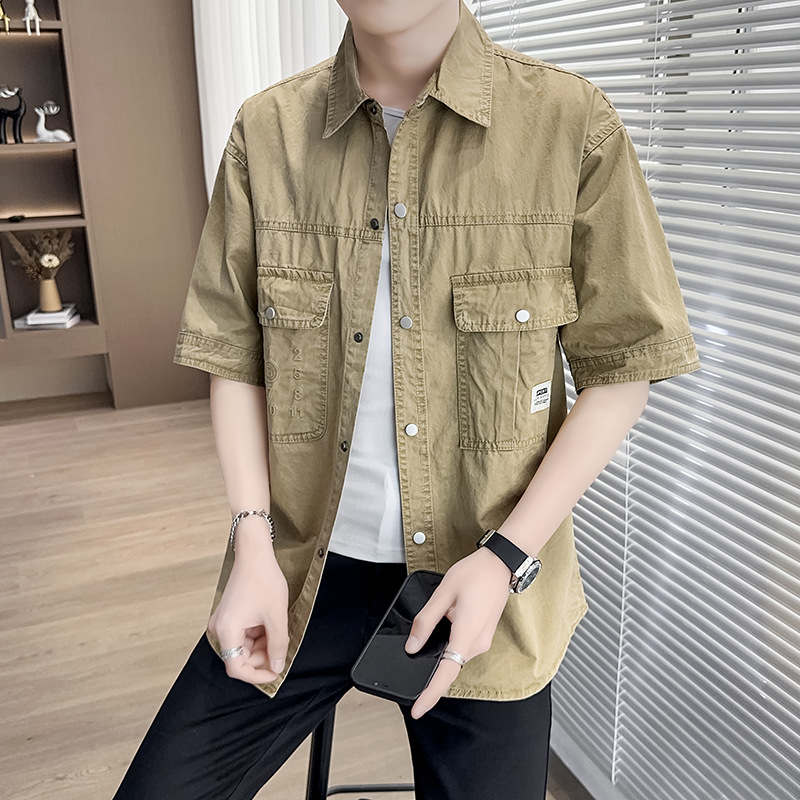 夏季男士牛仔短袖衬衫青少年日常百搭半截袖T恤休闲时尚速干舒适