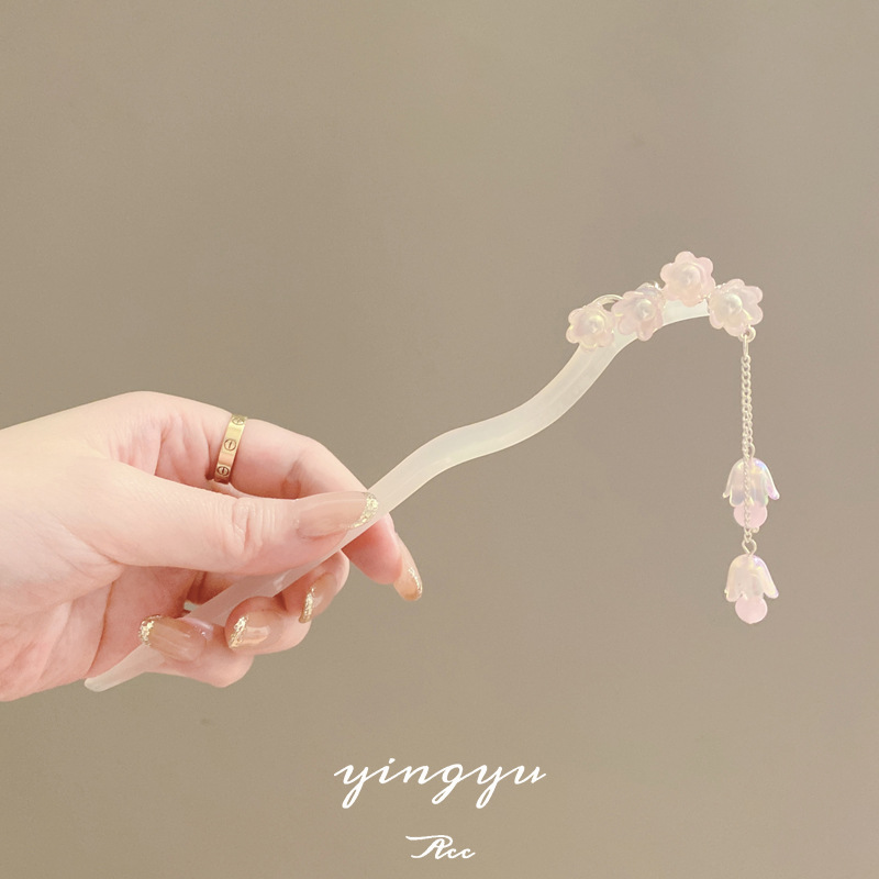 醋酸现代简约淡雅花朵发簪新中式流苏马面裙旗袍簪子女古风高级感