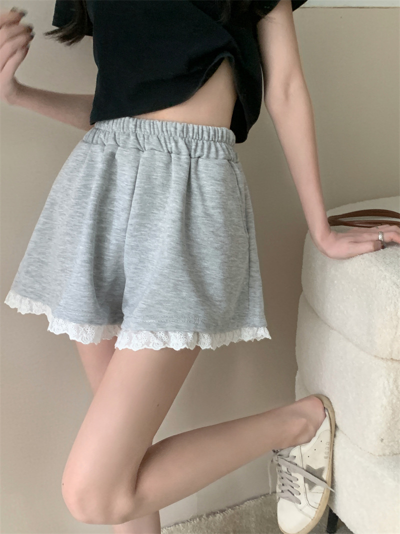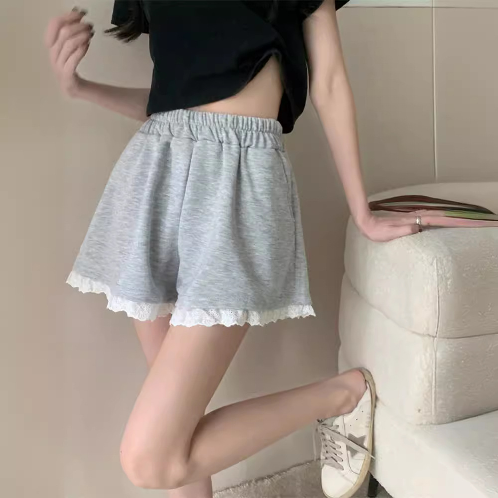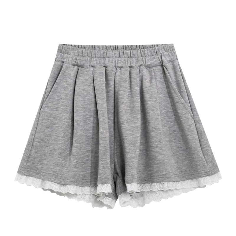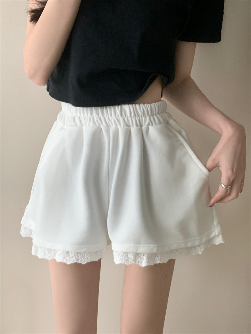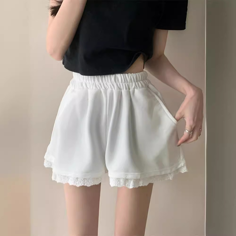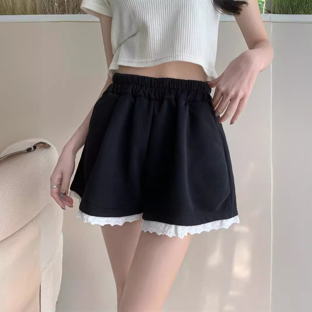 阔腿显瘦短裤子夏季新款女装韩系纯欲蕾丝边拼接高腰宽松休闲裤潮