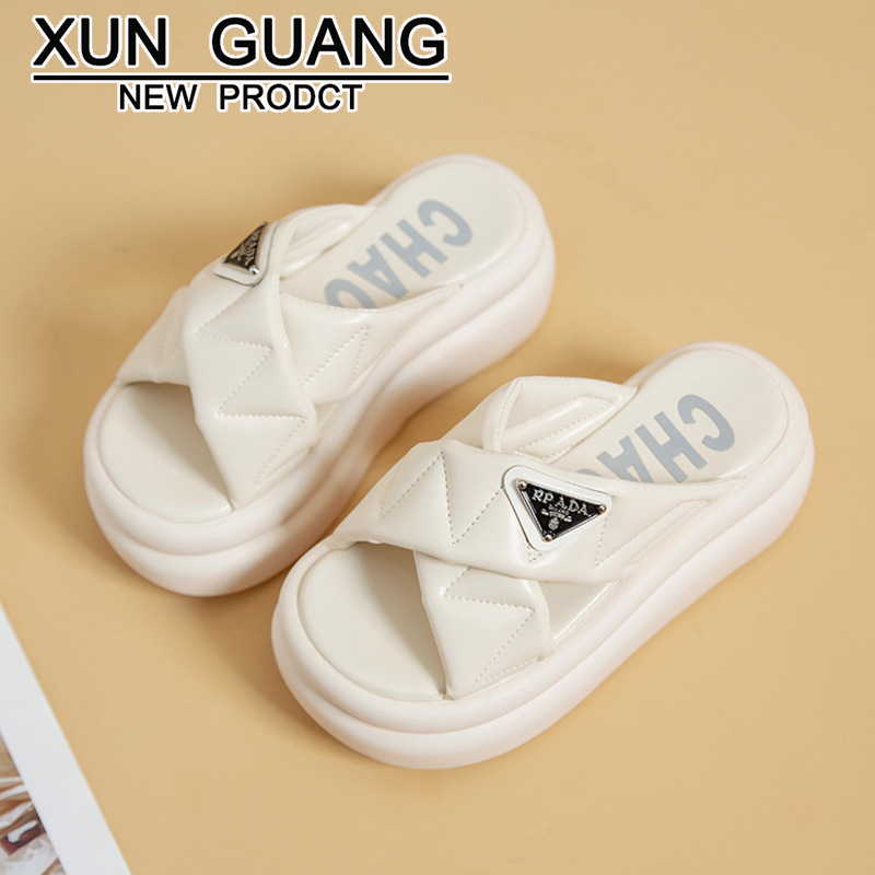 厚实增高一字拖鞋女外穿夏季新款小个子百搭交叉带休闲沙滩鞋