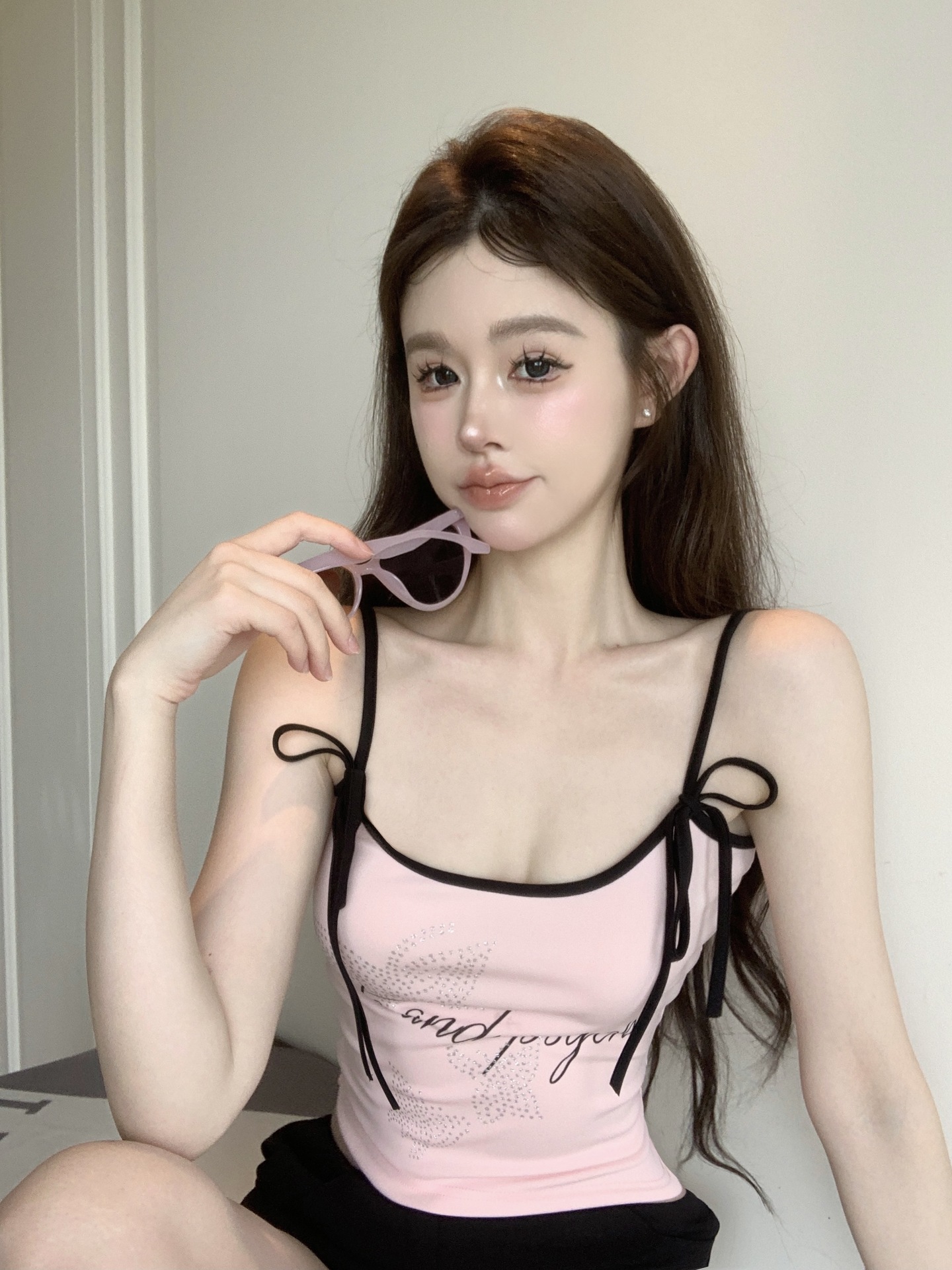 蝴蝶结粉色烫钻吊带背心女外穿夏季泰式甜辣妹jazz抹胸绝美小上衣