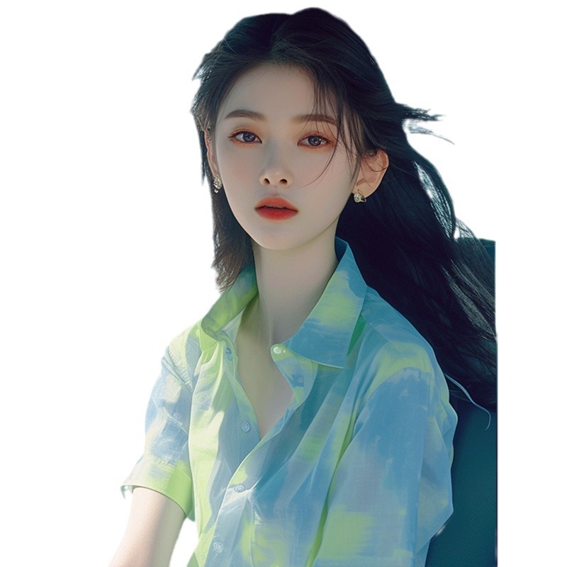 夏季小众法式设计感独特绝美上衣时髦洋气宽松晕染印花短袖衬衫女