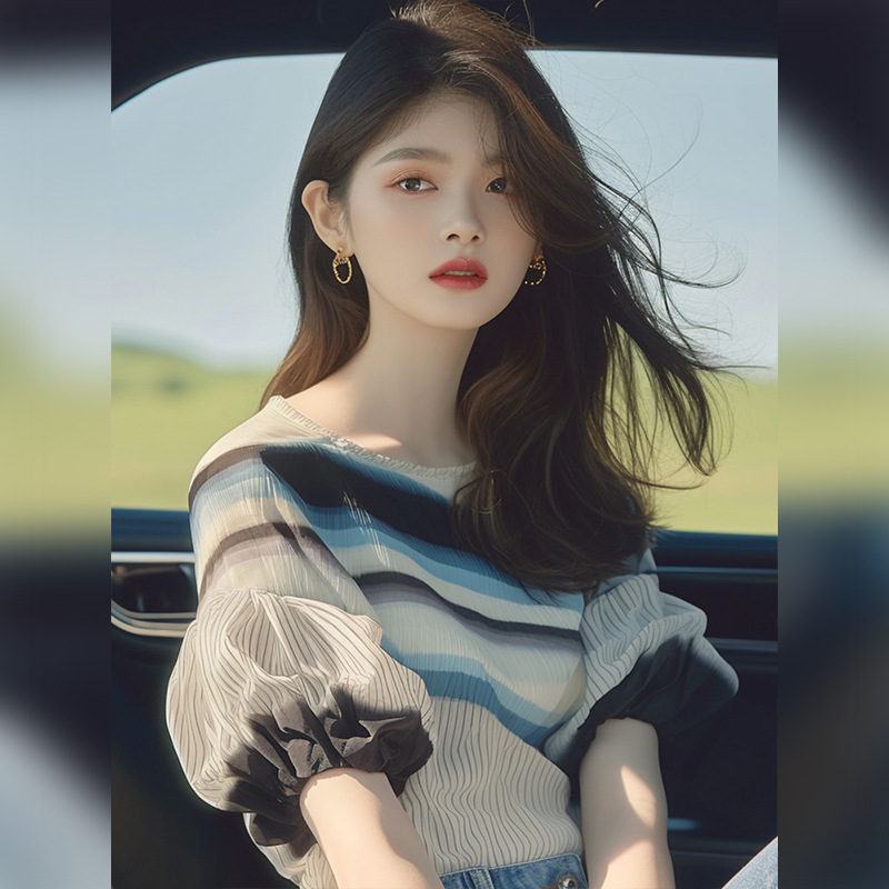 独特小众设计感漂亮上衣韩系洋气减龄宽松气质绝美撞色泡泡袖衬衫