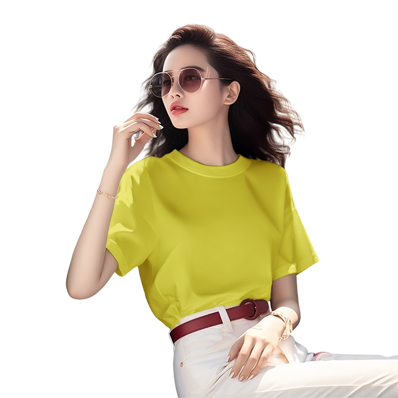 黄色多巴胺正肩短袖T恤女新款夏独特别致慵懒松弛感上衣