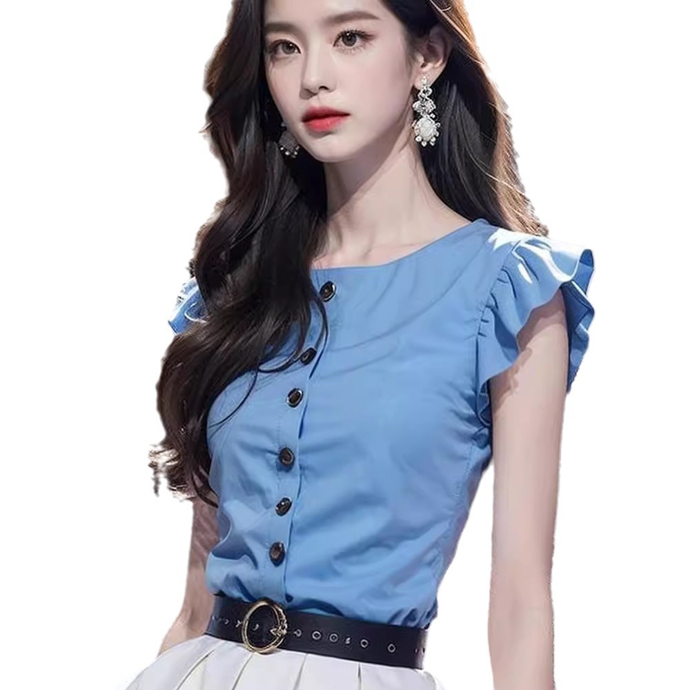 多巴胺穿搭飞飞短袖衬衫女设计感小众夏季独特别致甜辣妹短款上衣