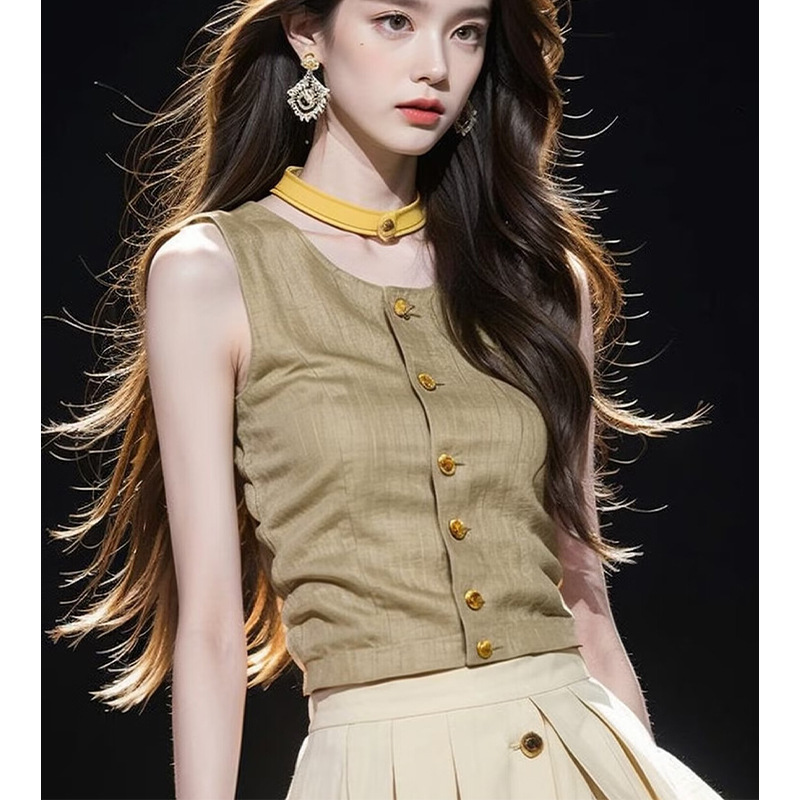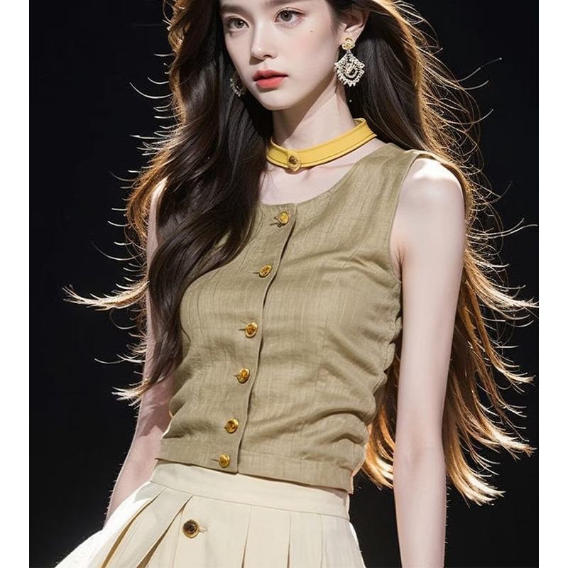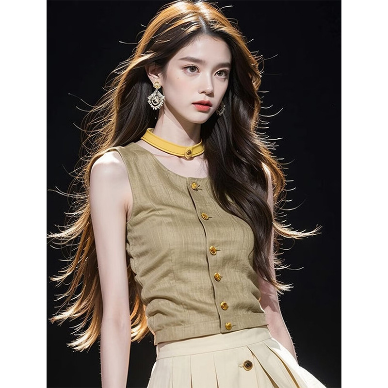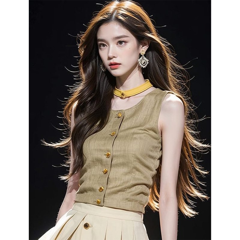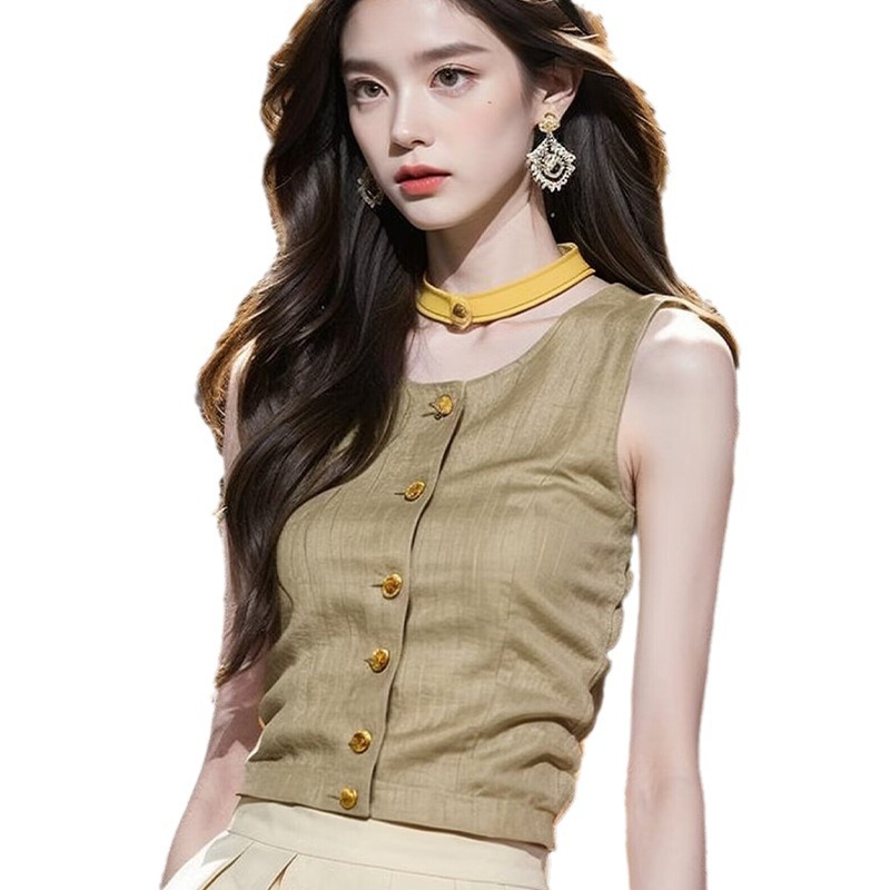新款女轻奢高级感衬衫轻熟法式小众气质收腰杏色背心上衣夏季