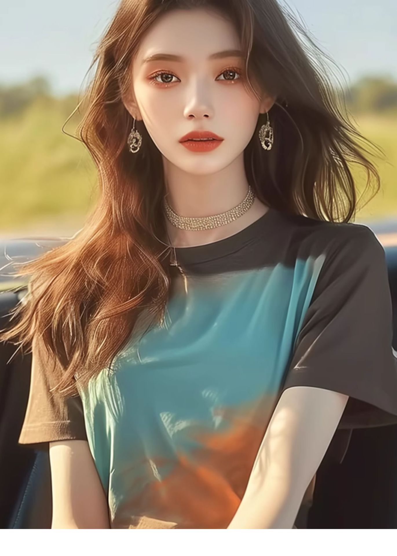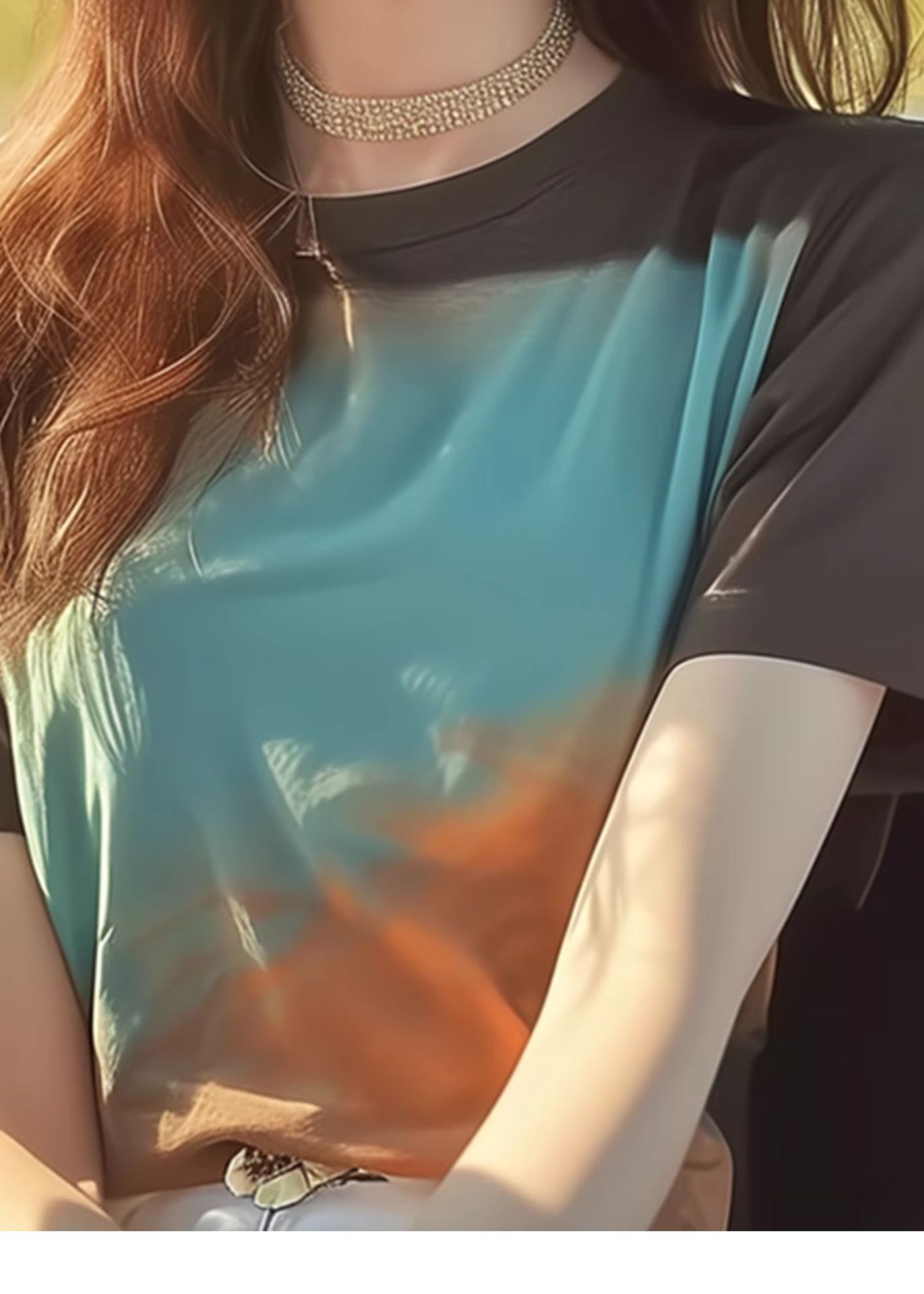 港风复古撞色圆领短袖T恤女夏年新款宽松独特别致甜辣小上衣