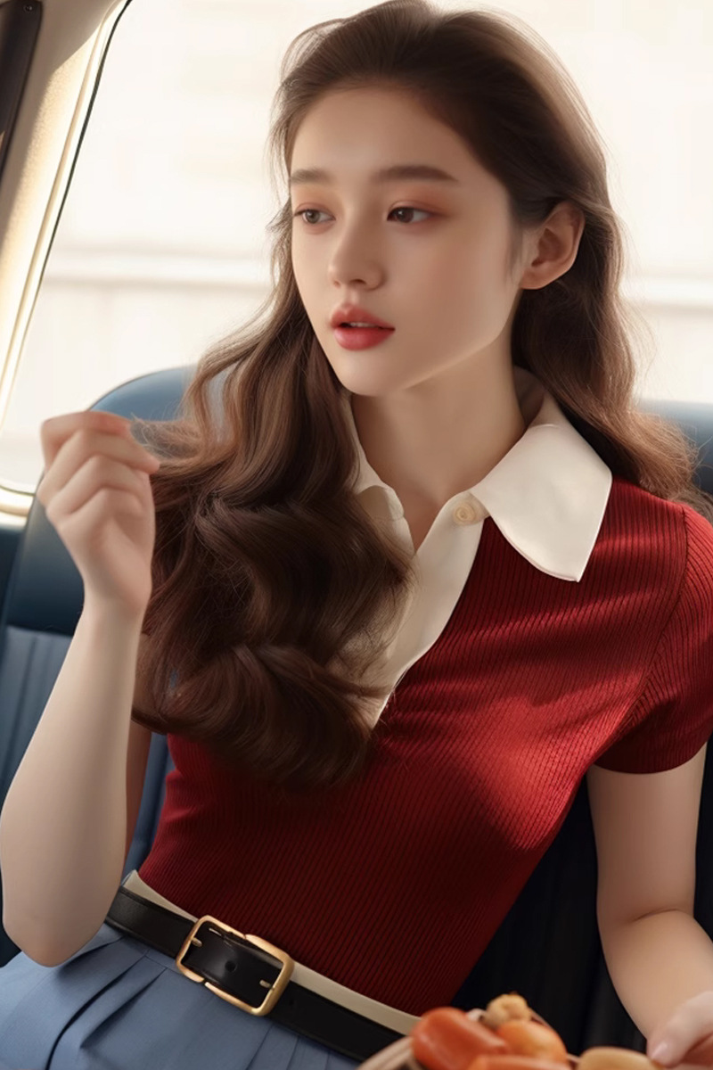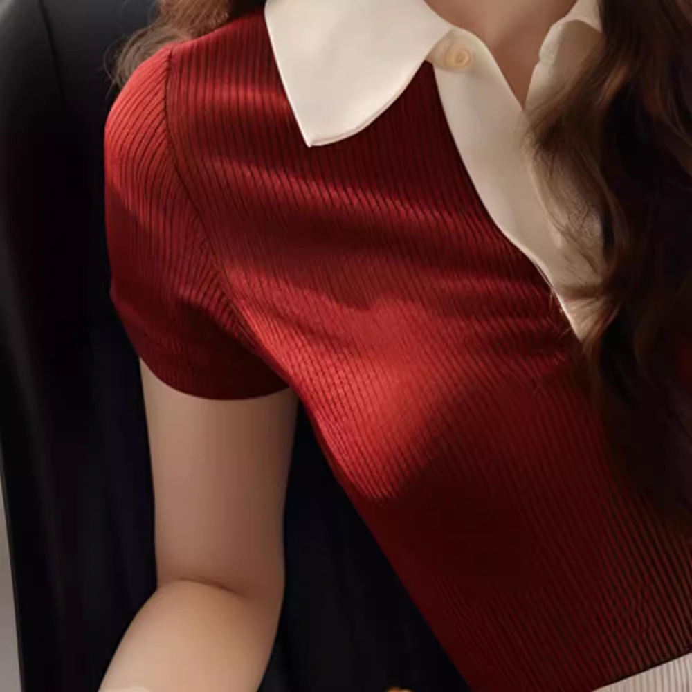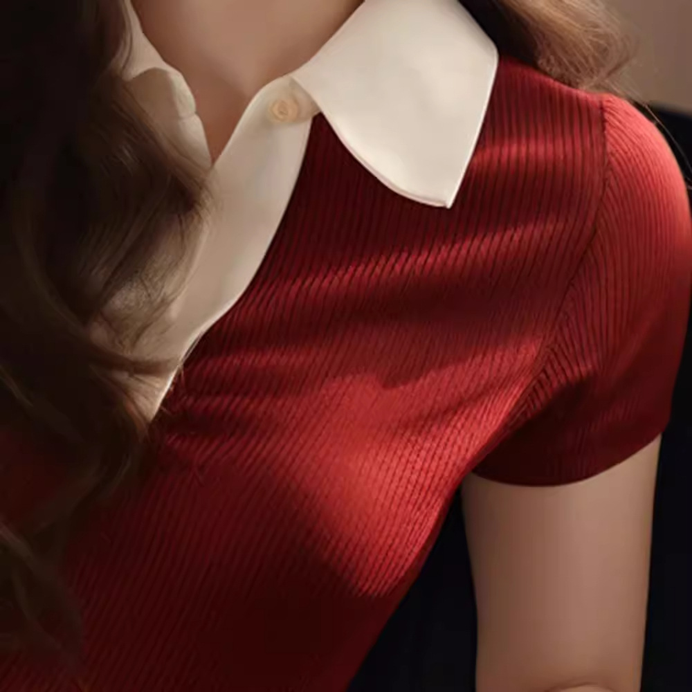 夏季法式独特别致冰丝针织上衣高级设计感polo领多巴胺短袖t恤女
