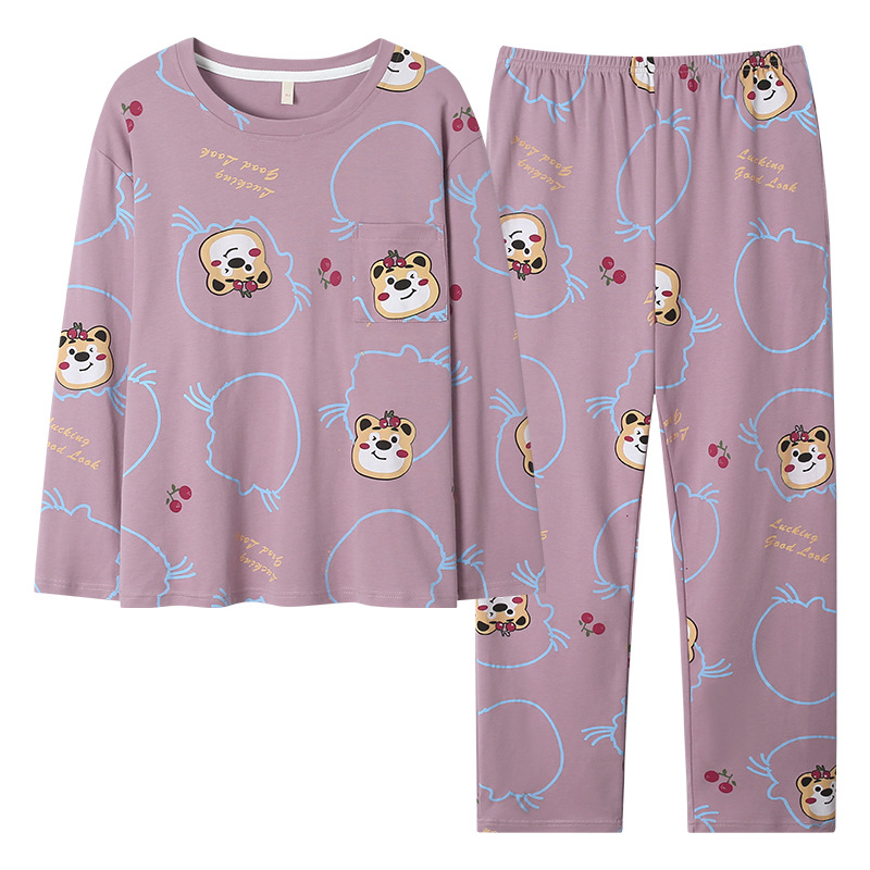 睡衣女春秋季纯棉薄款长袖年新款卡通可爱外穿大码家居服套装