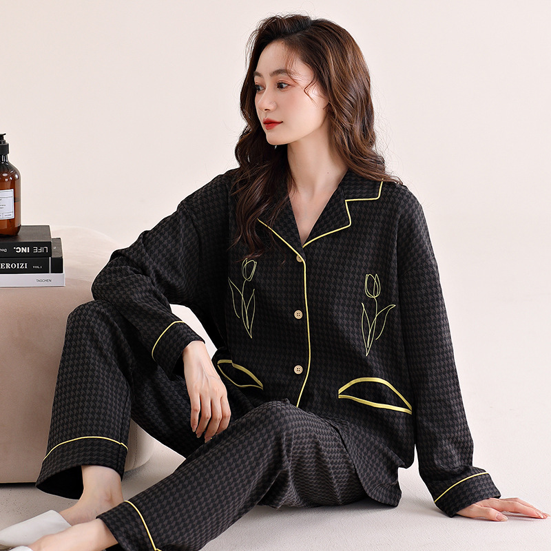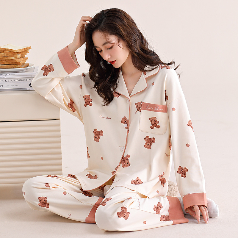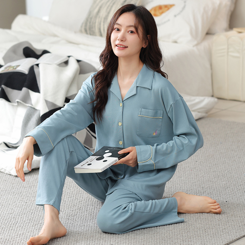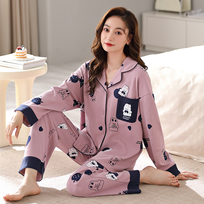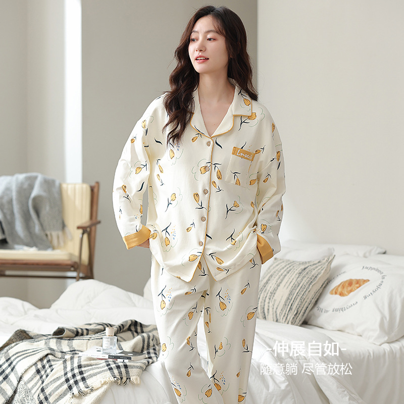 睡衣女士春秋季纯棉长袖年新款开衫加大码韩版外穿家居服套装