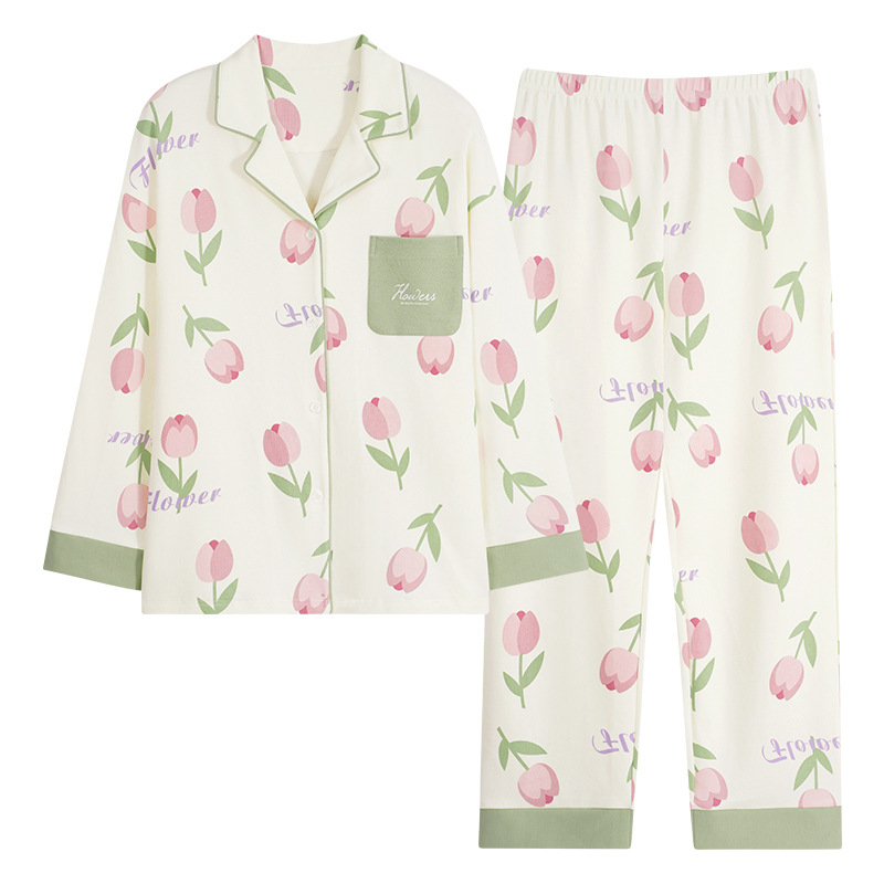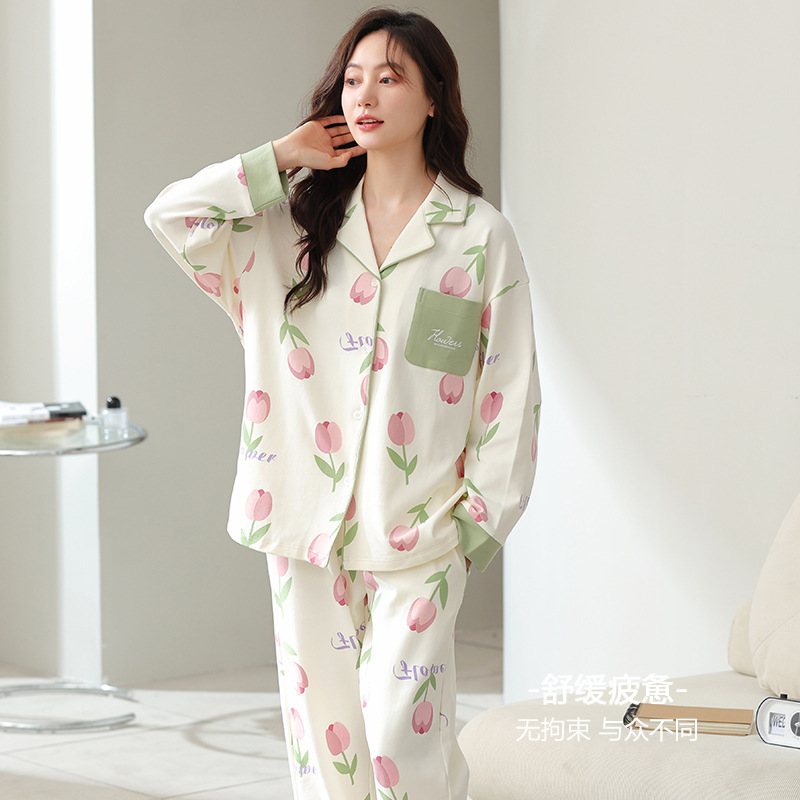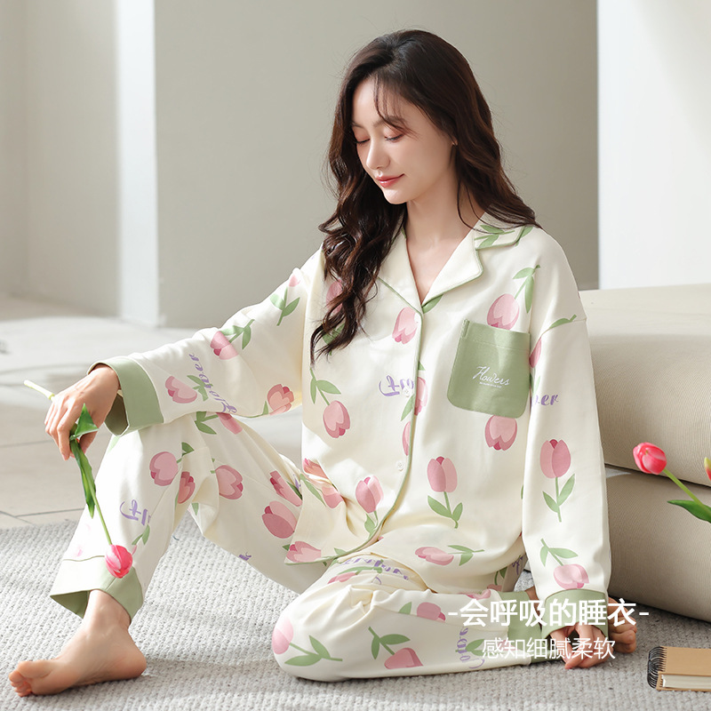 睡衣女士春秋季纯棉薄款长袖年新款开衫加大码韩版家居服套装