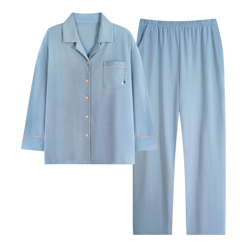 睡衣女春秋季纯棉薄款长袖开衫翻领简约秋天可外穿大码家居服套装
