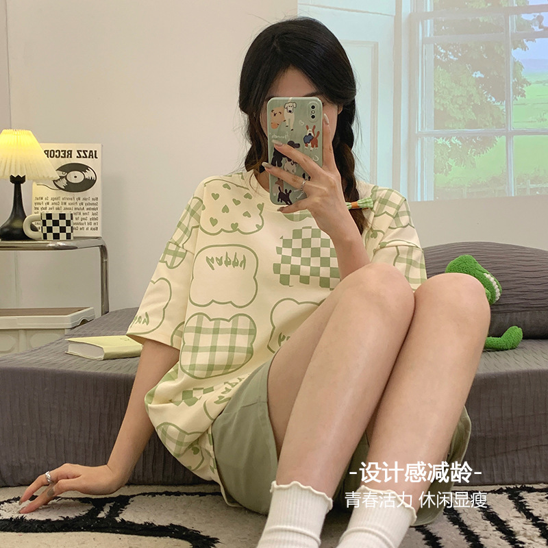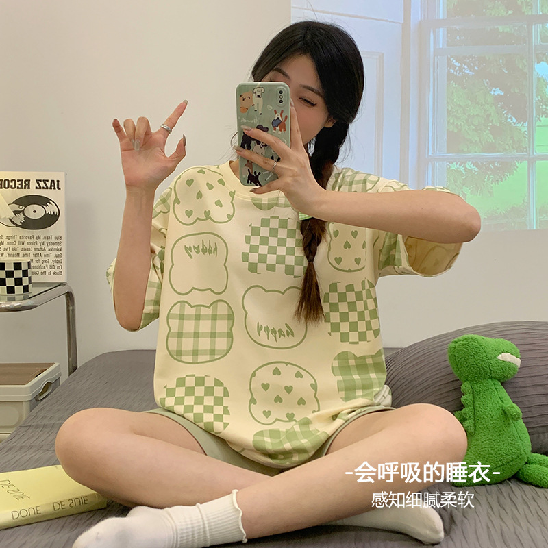 纯棉睡衣女夏季短袖年新款休闲少女士可爱初中学生卡通家居服