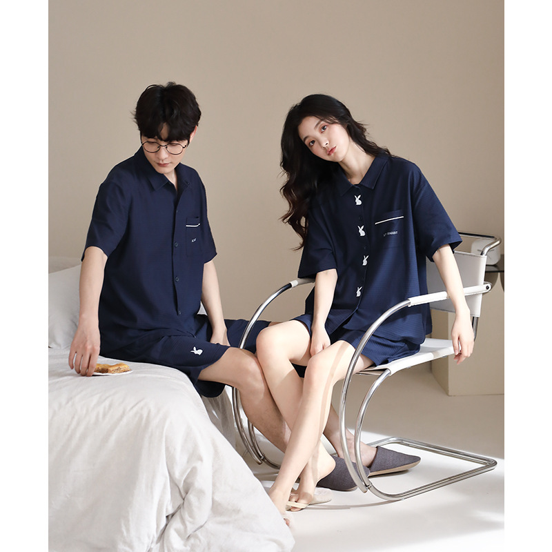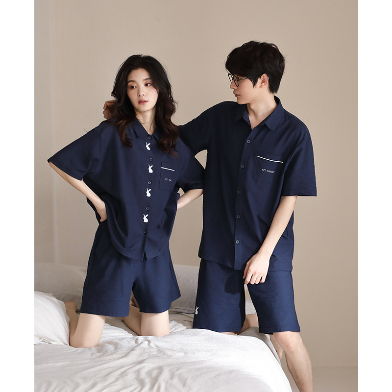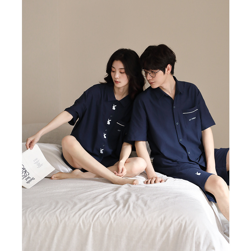 睡衣情侣装纯棉夏季薄款短袖一男一女韩版简约年新款家居服夏