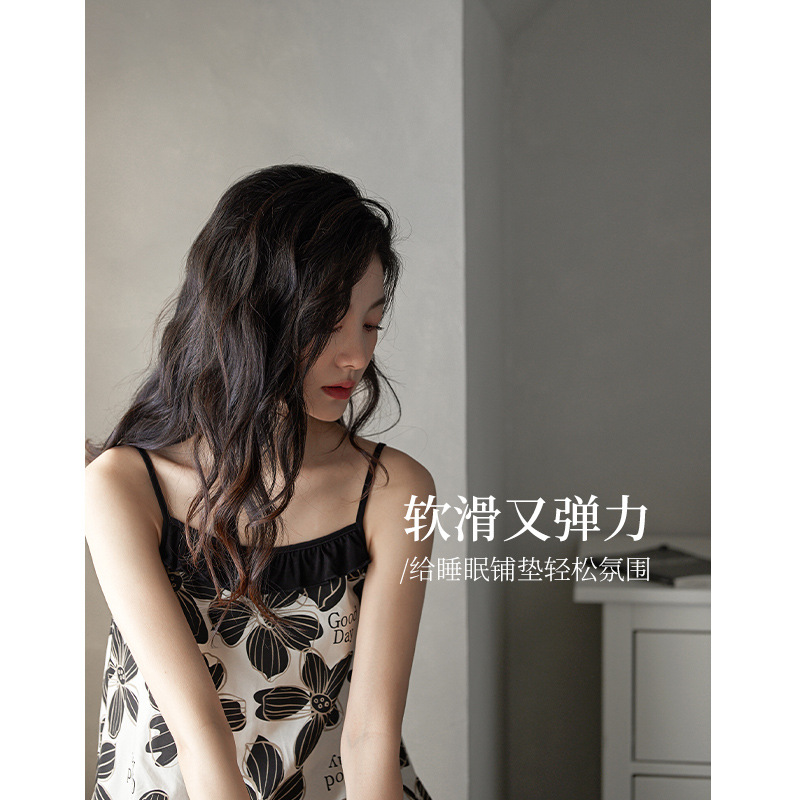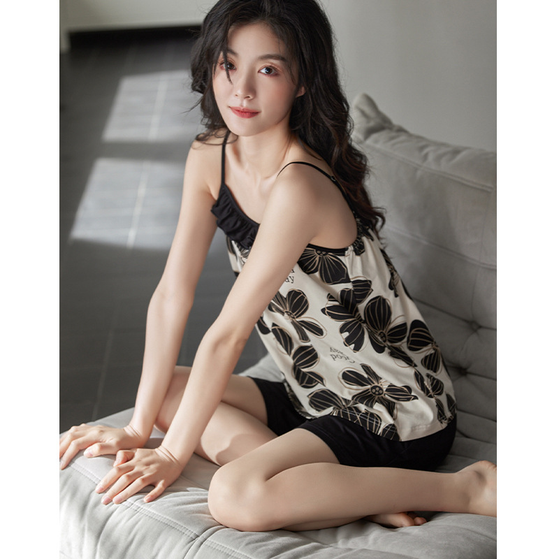 吊带睡衣女款夏天莫代尔棉短裤两件套甜美时尚菊花印花家居服套装