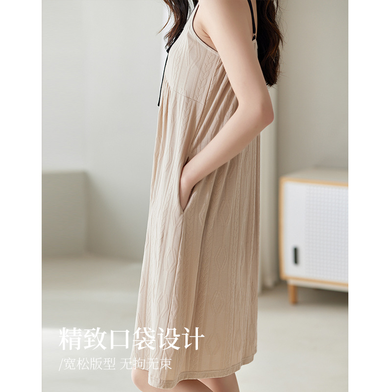 吊带睡裙女夏款莫代尔棉薄款简约休闲中长款睡衣家居服夏天连衣裙