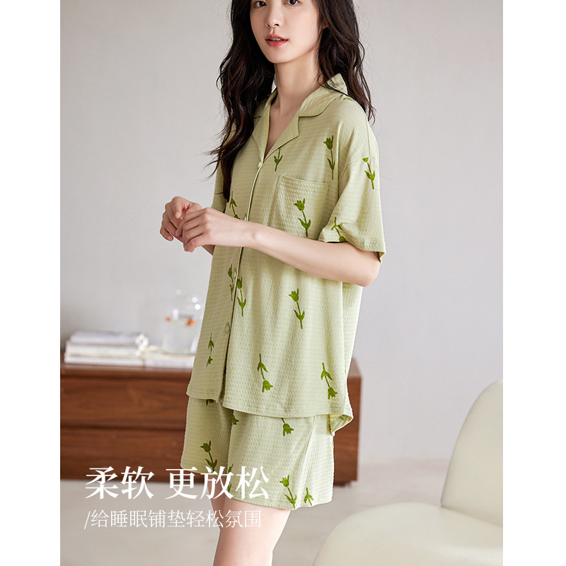 【超柔软】短袖睡衣女款夏季纯棉薄款短裤小郁金香家居服套装夏天