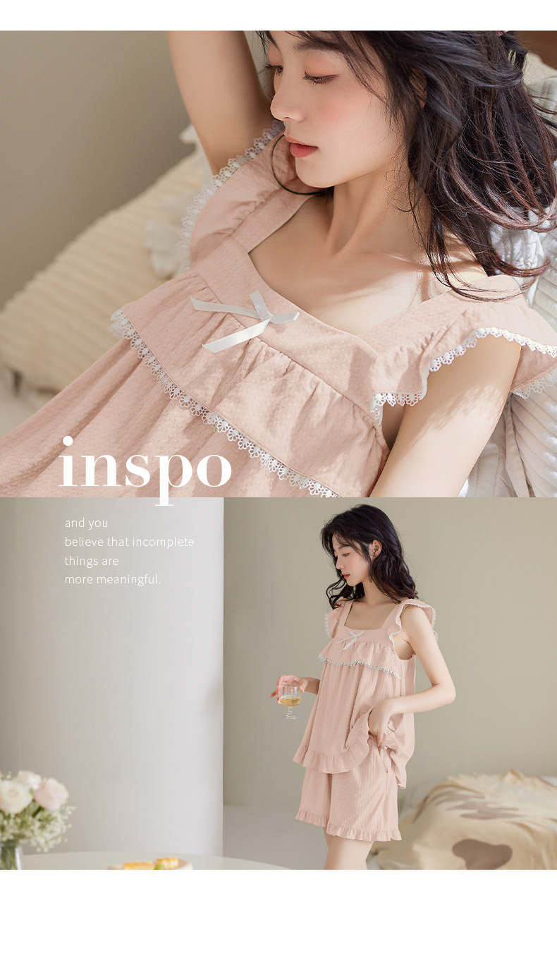 【超柔软】夏季睡衣女吊带薄款纯棉防凸点可外穿少女家居服两件套