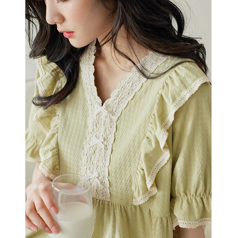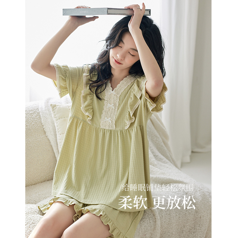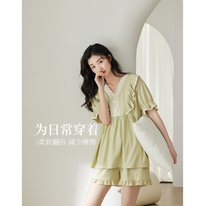 【超柔软】纯棉睡衣女夏款短袖甜美公主风可外穿V领家居服两件套