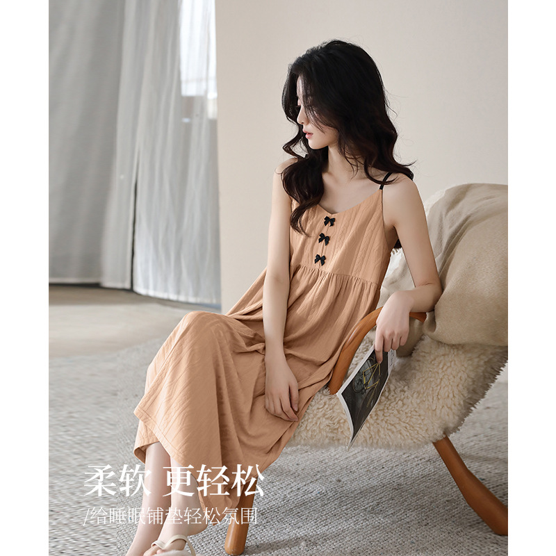 莫代尔睡裙女夏款简约休闲长款可外穿吊带睡衣凉感家居服裙子夏天