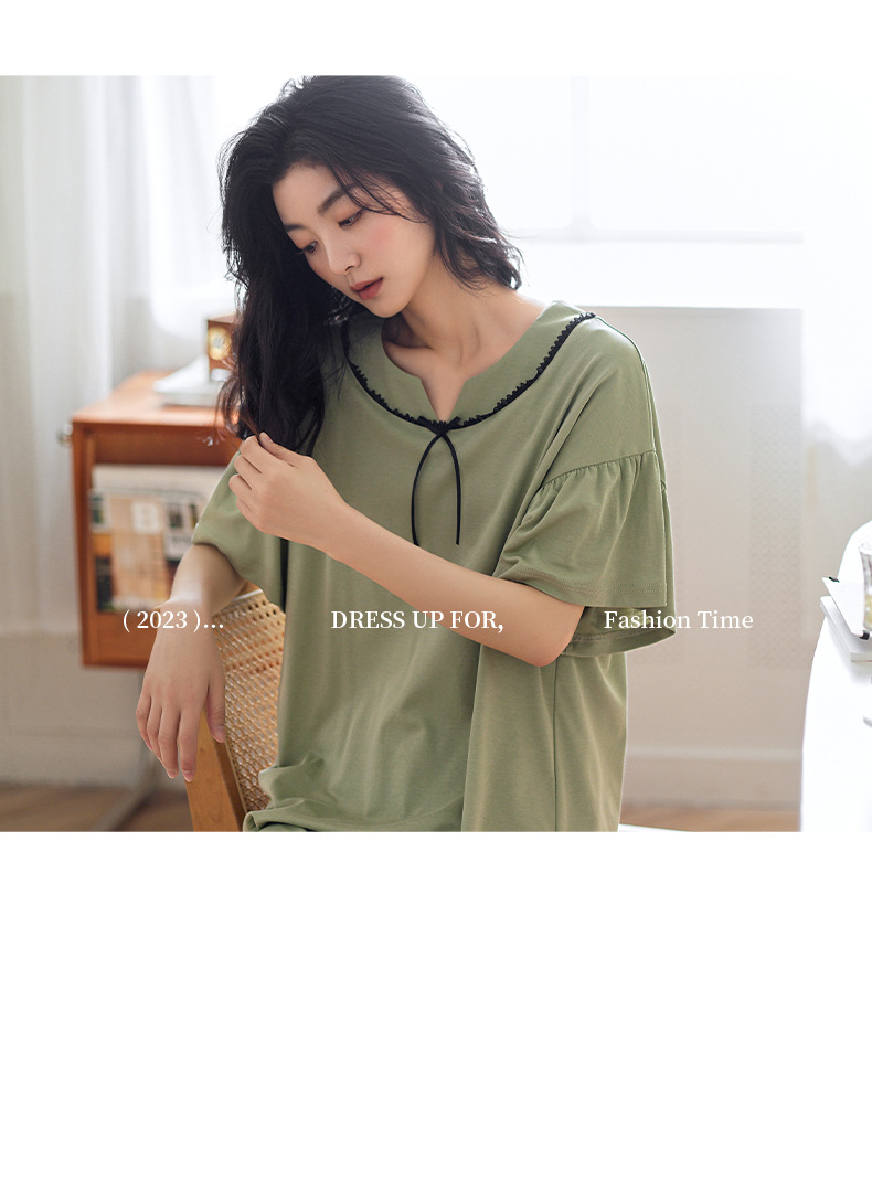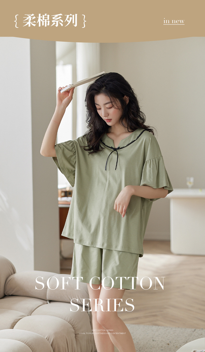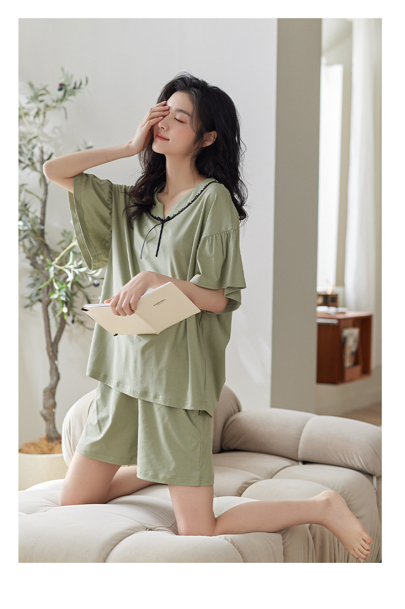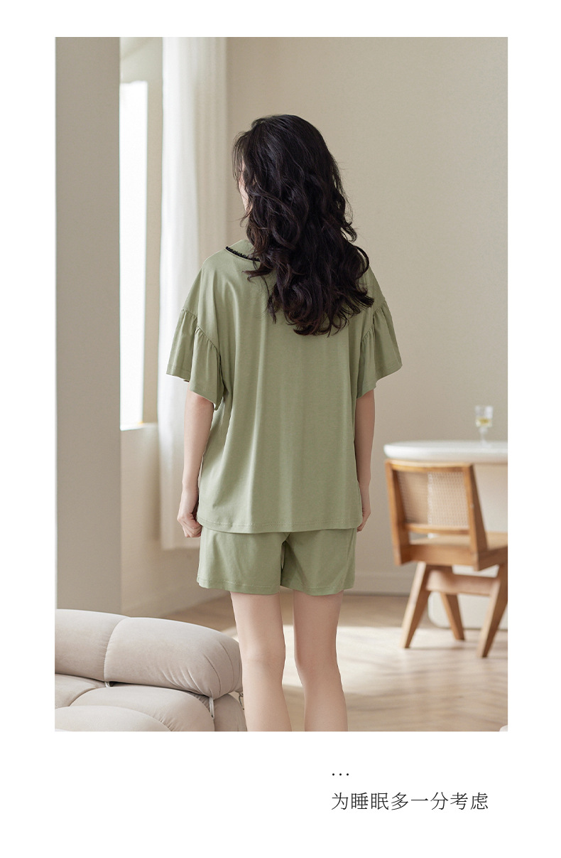 莫代尔睡衣女夏款年新款短袖短裤休闲简约凉感绿色家居服套装