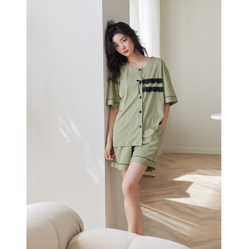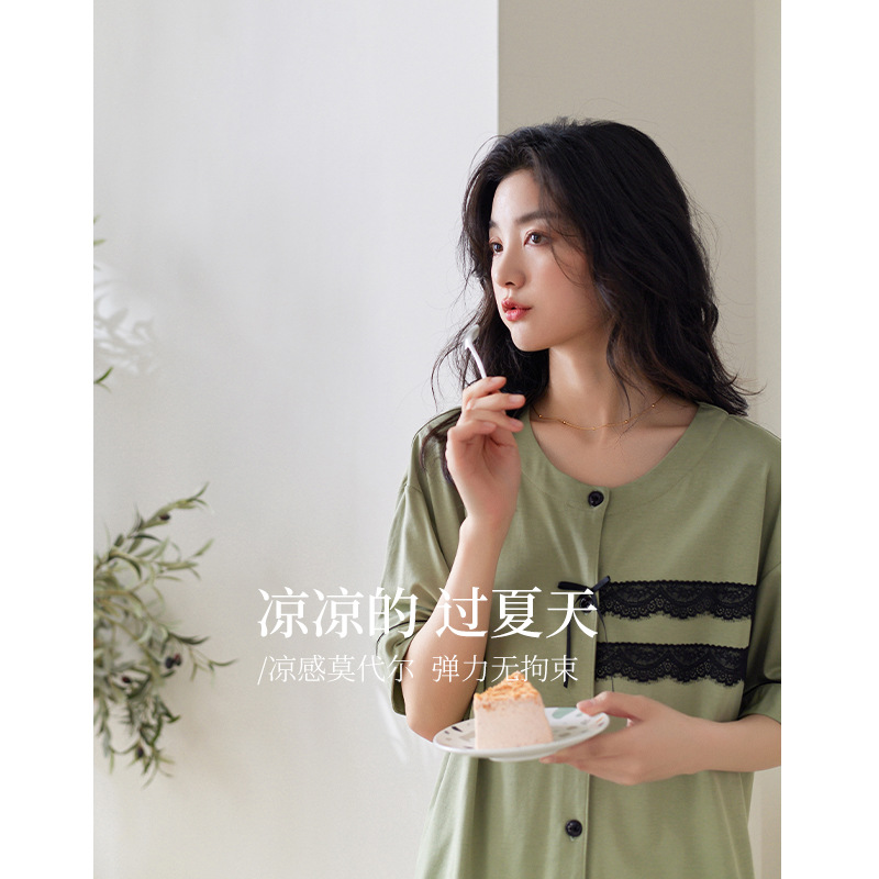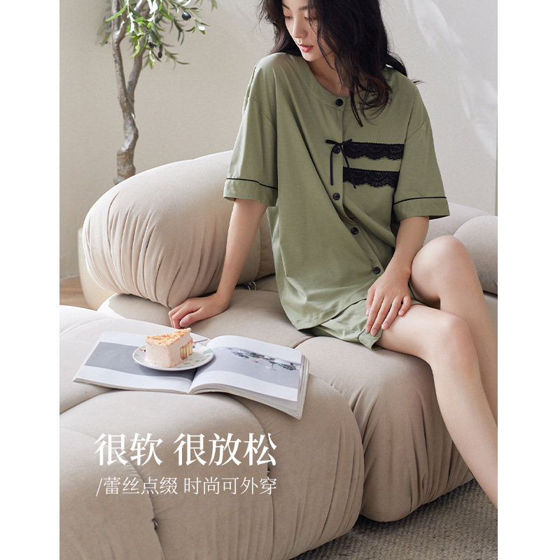 莫代尔棉睡衣女款夏季短袖短裤薄款简约休闲两件套家居服套装夏天