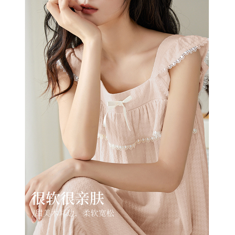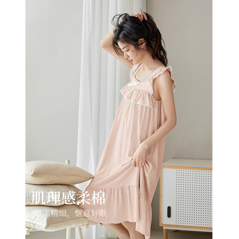 【超柔软】吊带睡裙女夏季纯棉薄款甜美粉色少女中长款睡衣连衣裙