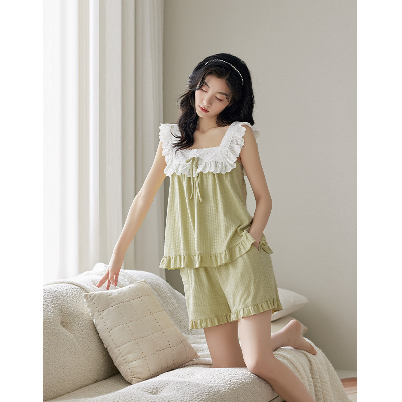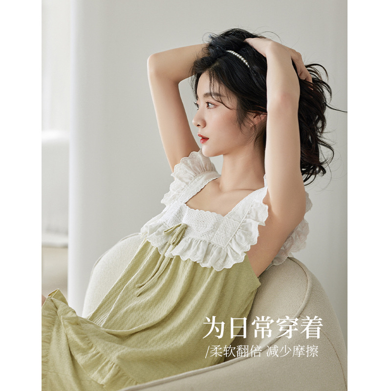 【超柔软】吊带睡衣女士夏季纯棉薄款时尚简约防凸点家居服两件套