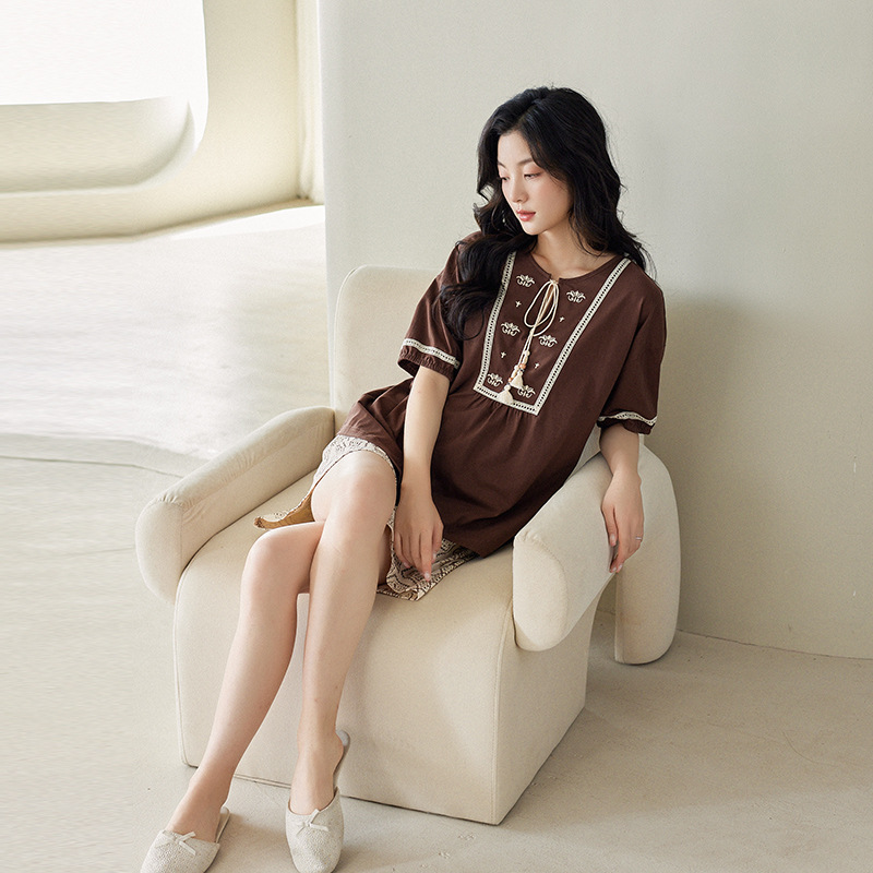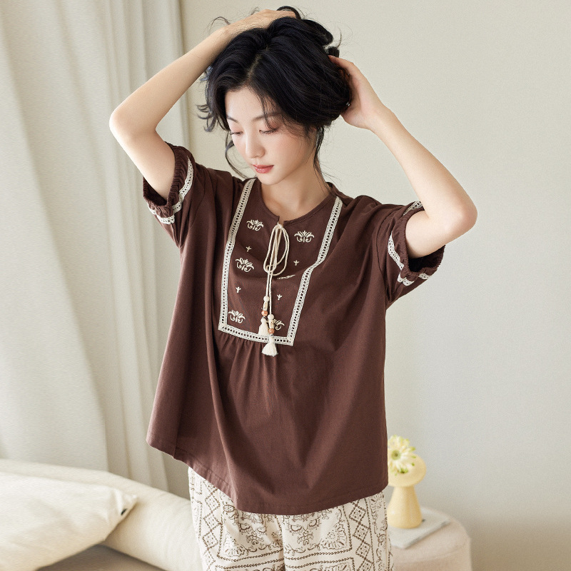 【凉感型】睡衣女夏季短袖短裤薄款纯棉波西米亚风格家居服两件套