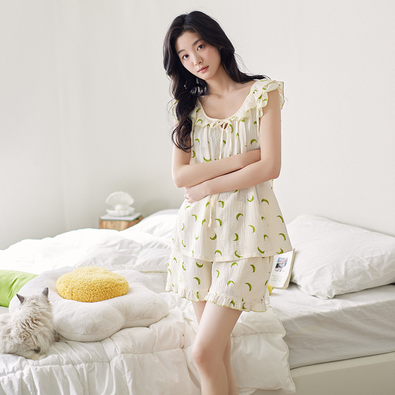 【凉感型】吊带睡衣女夏款小清新甜美梭织棉纱布薄款家居服两件套