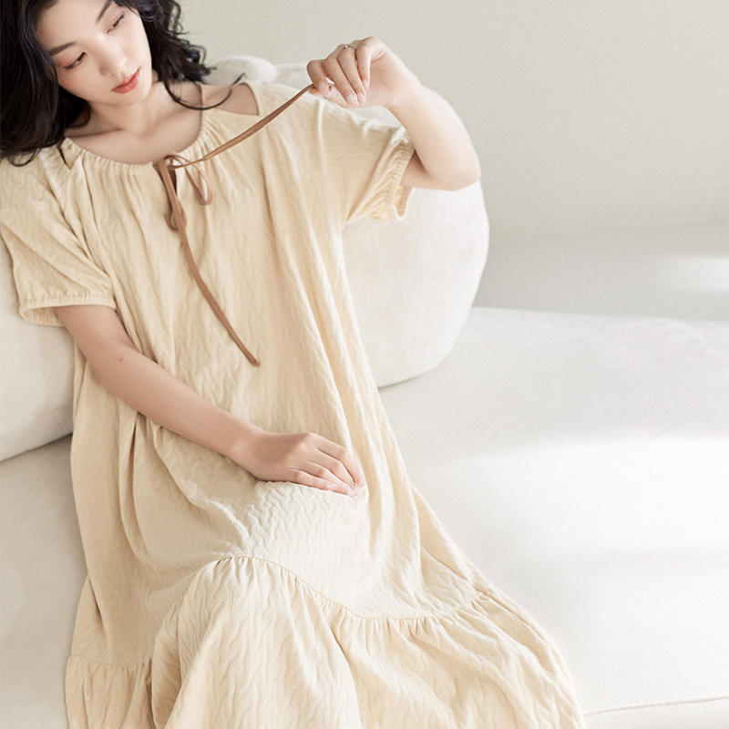 【凉感型】睡裙夏季女纯棉短袖薄款性感纯欲风可外穿长款睡衣夏天