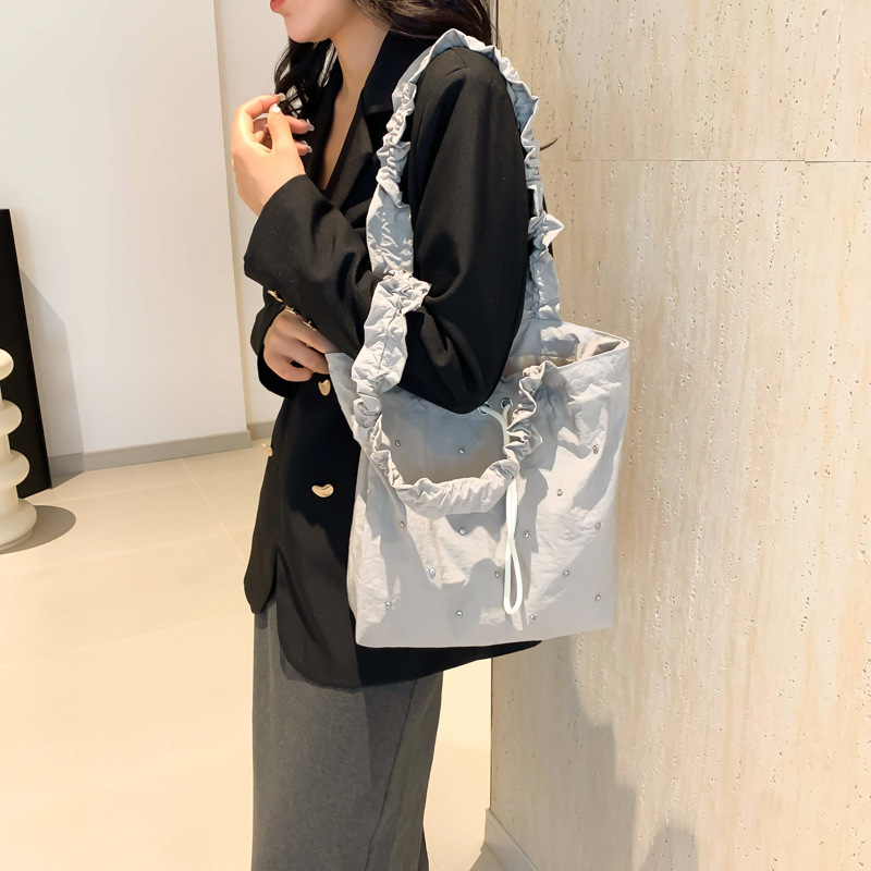 韩系大容量帆布包女新款夏天休闲慵懒风单肩包ins褶皱托特包